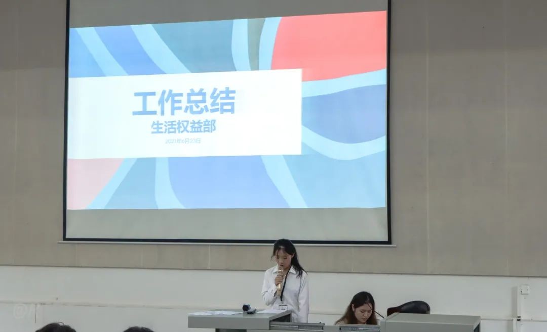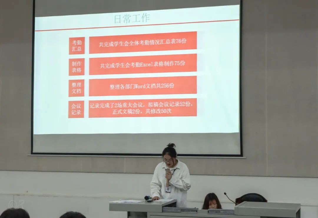 会议第二项,由校学生会主席团代表代淳淳进行本学期工作总结