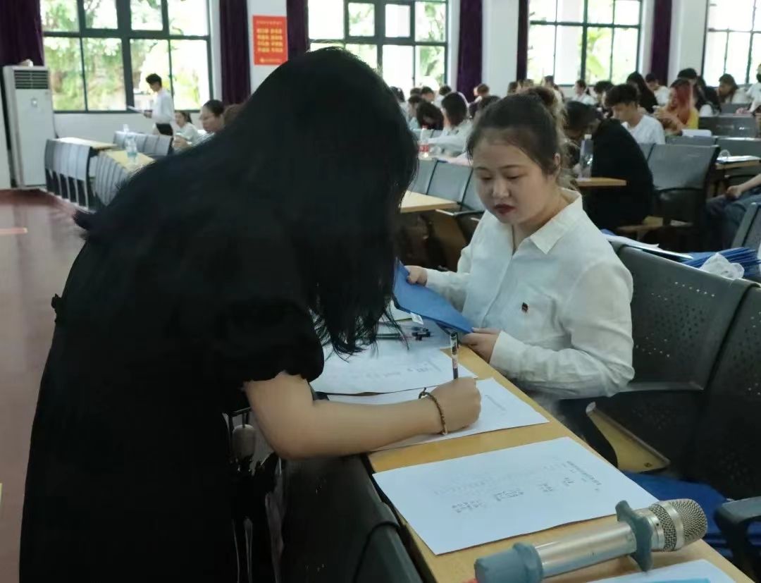 会议开始之前,各学生代表有序在签到处进行签到,领取装有选举相关材料的文件袋,并有序按指定位置落座。