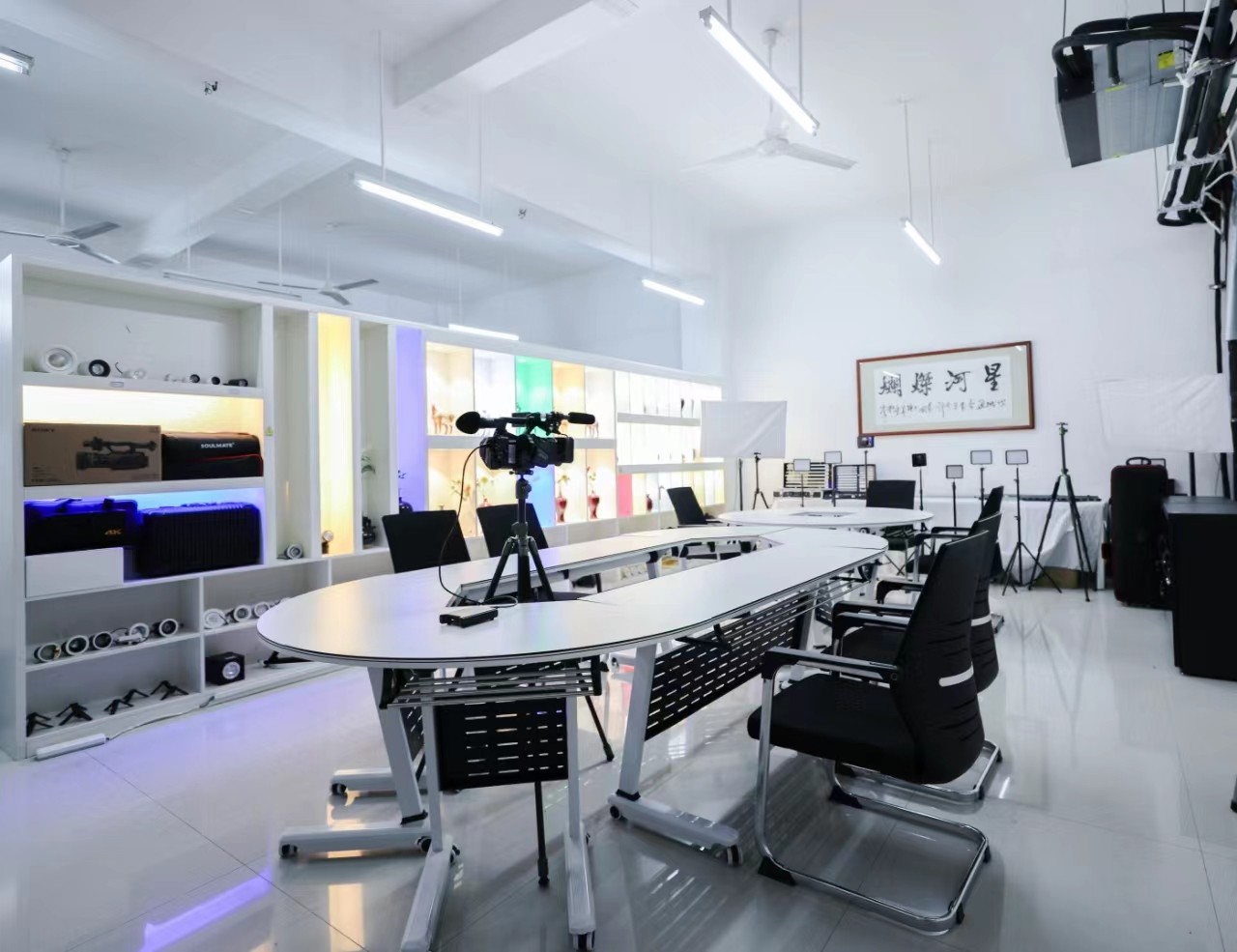 环境设计灯光实验室位于北海艺术设计学院西校区公德楼307室,使用面积47平方米,于2020年12月建成并投入使用。实验设备有光色展示柜、不同类型的洗墙灯、线条灯、筒灯、地埋灯、射灯等灯具、可调式灯光架、摄影棚灯光照明专用设备等。