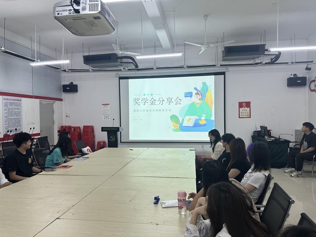 为普及奖学金政策,带动低年级学生学习热情,提高学生学习效率,根据北艺学工〔2024〕27号文件,建筑与环境艺术学院于2024年5月16日召开奖学金分享会。
