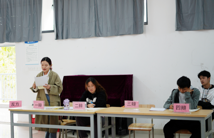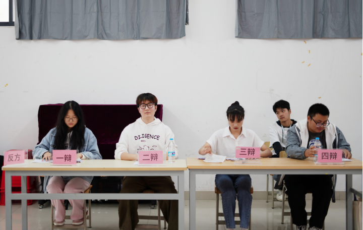 此次比赛分为立论质询、攻辩、 攻辩小结、自由辩论、总结陈词五个环节,共4组八支代表队伍参赛。