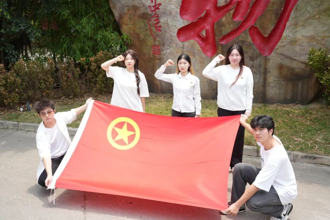 为深入学习贯彻习近平新时代中国特色社会主义思想,迎接五四青年节的到来,激励青年团员继承和发扬五四精神,增强青年团员的使命感、信念感,凝聚各组织的青年力量,我校团委开展“与团旗合影”活动。