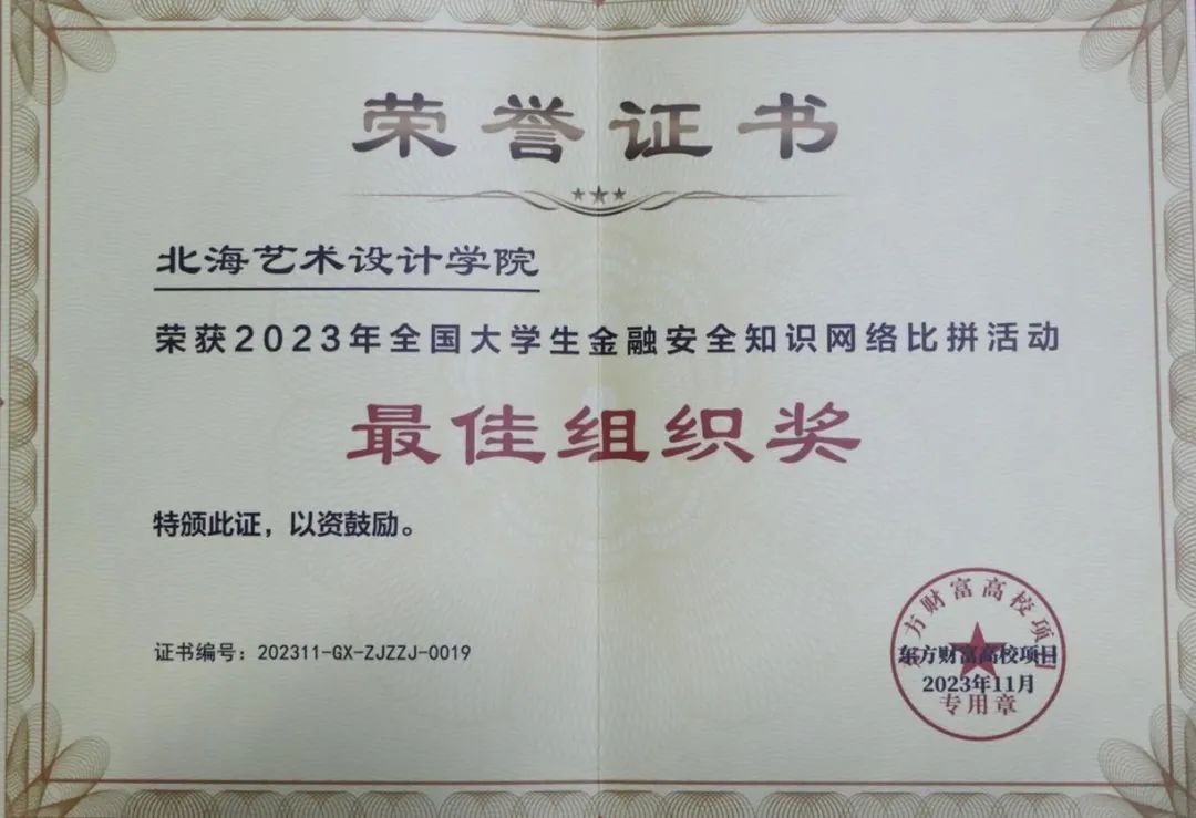我校团委在2023年全国大学生金融安全知识网络比拼活动中,荣获“最佳组织奖”