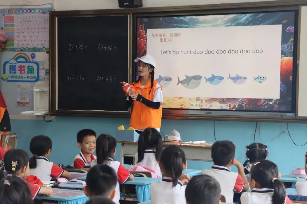 在音乐课堂上,践行团的成员们通过简单的实例让同学们融入到音乐的世界中去,每一个同学都学习的非常认真。