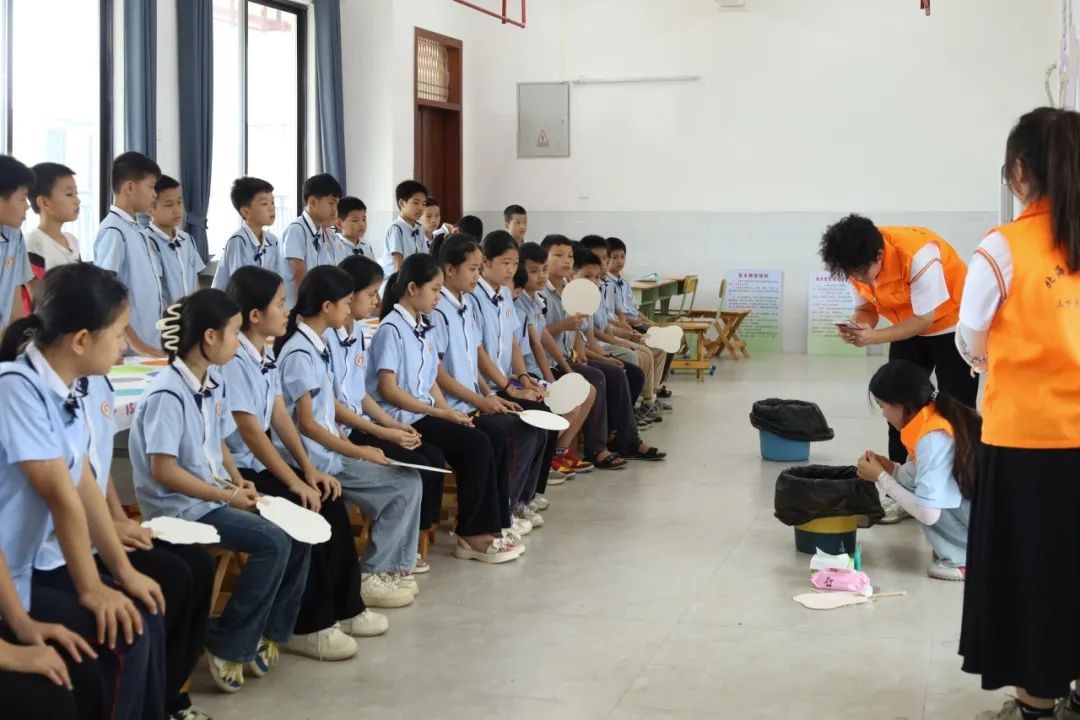 手工课上,践行团为同学们介绍了漆扇制作工艺,并让同学们在亲身实践中感受到中华文化的魅力,让这项手工艺品的制作方法重现在同学们眼前。
