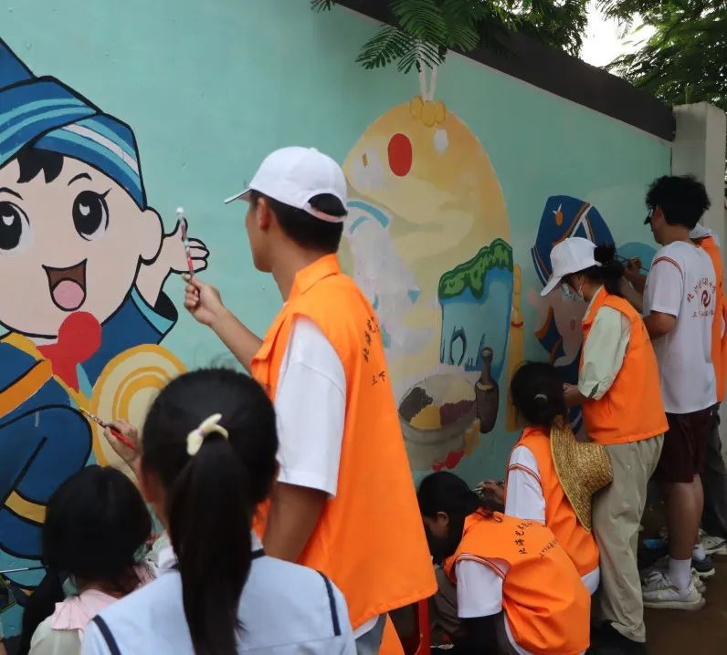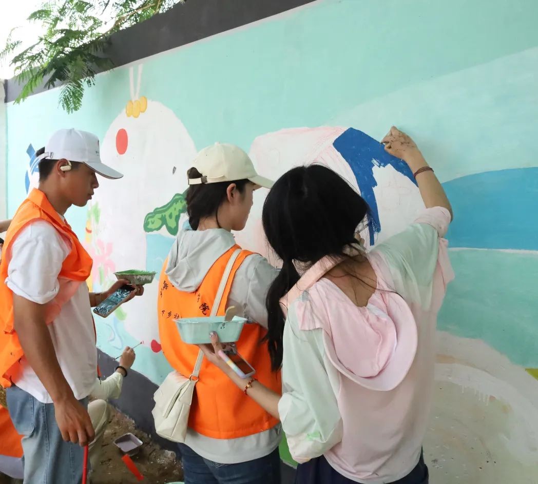 接着志愿者们开展了环境保护活动与墙绘活动,将自身的专业知识与本领运用到为人民服务之中去,通过墙体绘画装点村容村貌,用色彩勾勒出美丽乡村的完美画卷。墙绘的打造,不仅为美丽乡村增添了一道靓丽的风景线,还促进了当地旅游业的发展,为美丽乡村建设注入色彩与活力。
