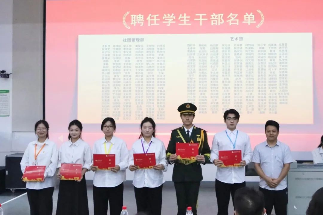 团委副书记杨美琪为先进个人代表颁发证书,并与获奖代表合影留念。他们的努力和贡献为学生组织的发展注入了新的动力。
