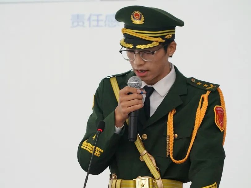 团委学生组织干部代表廖佳辉基于自己在国旗队两年的经历,进行了深度的感悟分享。过去作为干事,他聚焦于自身的训练提升,努力达到各项标准要求。如今成为干部,他不仅要确保国旗护卫任务的每一个环节都精准无误,更要承担起培养大一国旗队干事的重任。在培养过程中,他悉心指导,从基本动作的规范纠正,到国旗护卫精神的传承讲解,事无巨细。这种角色转变促使他不断成长,也让他对国旗队所承载的使命有了更为深刻的认知与坚定的守护信念。
