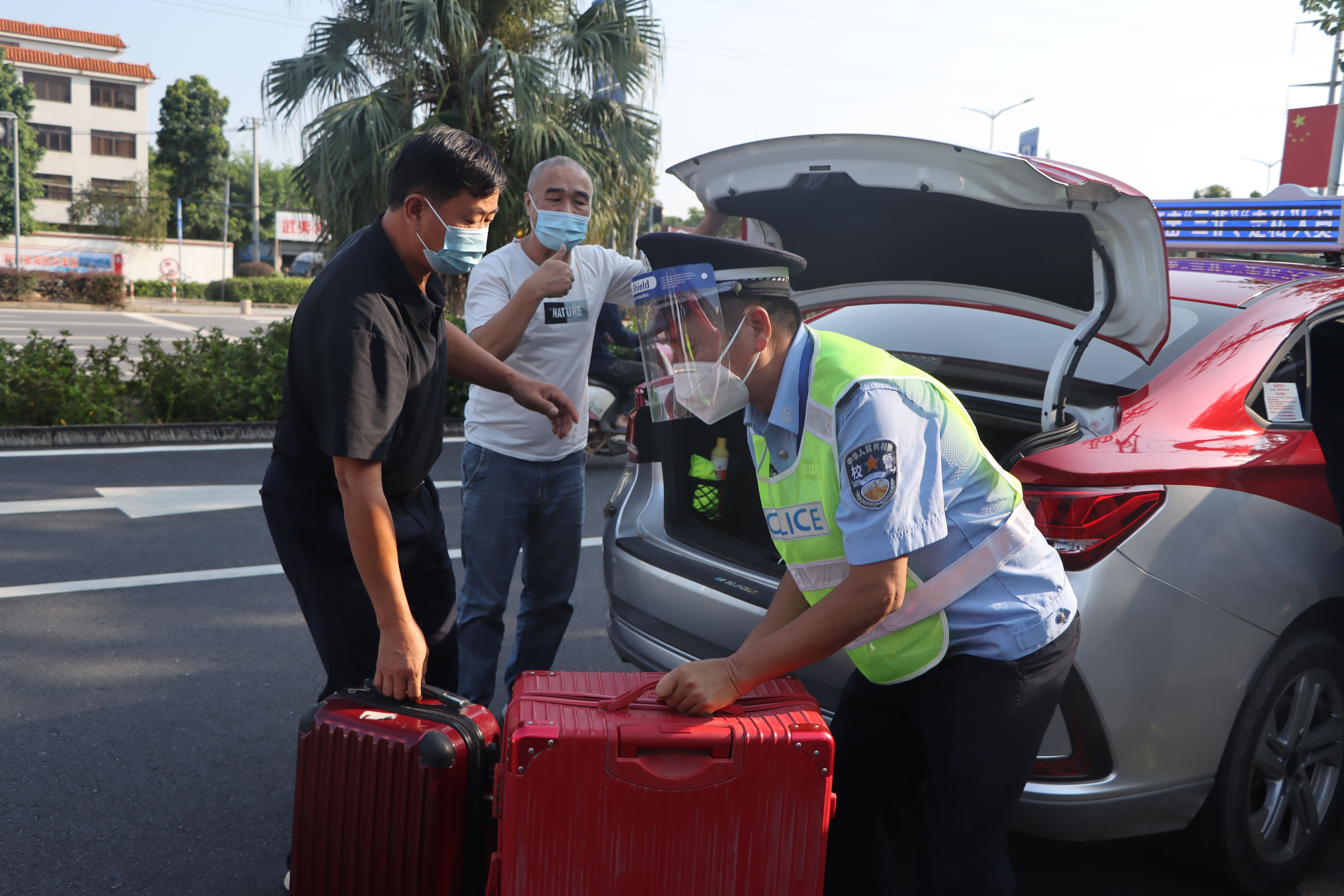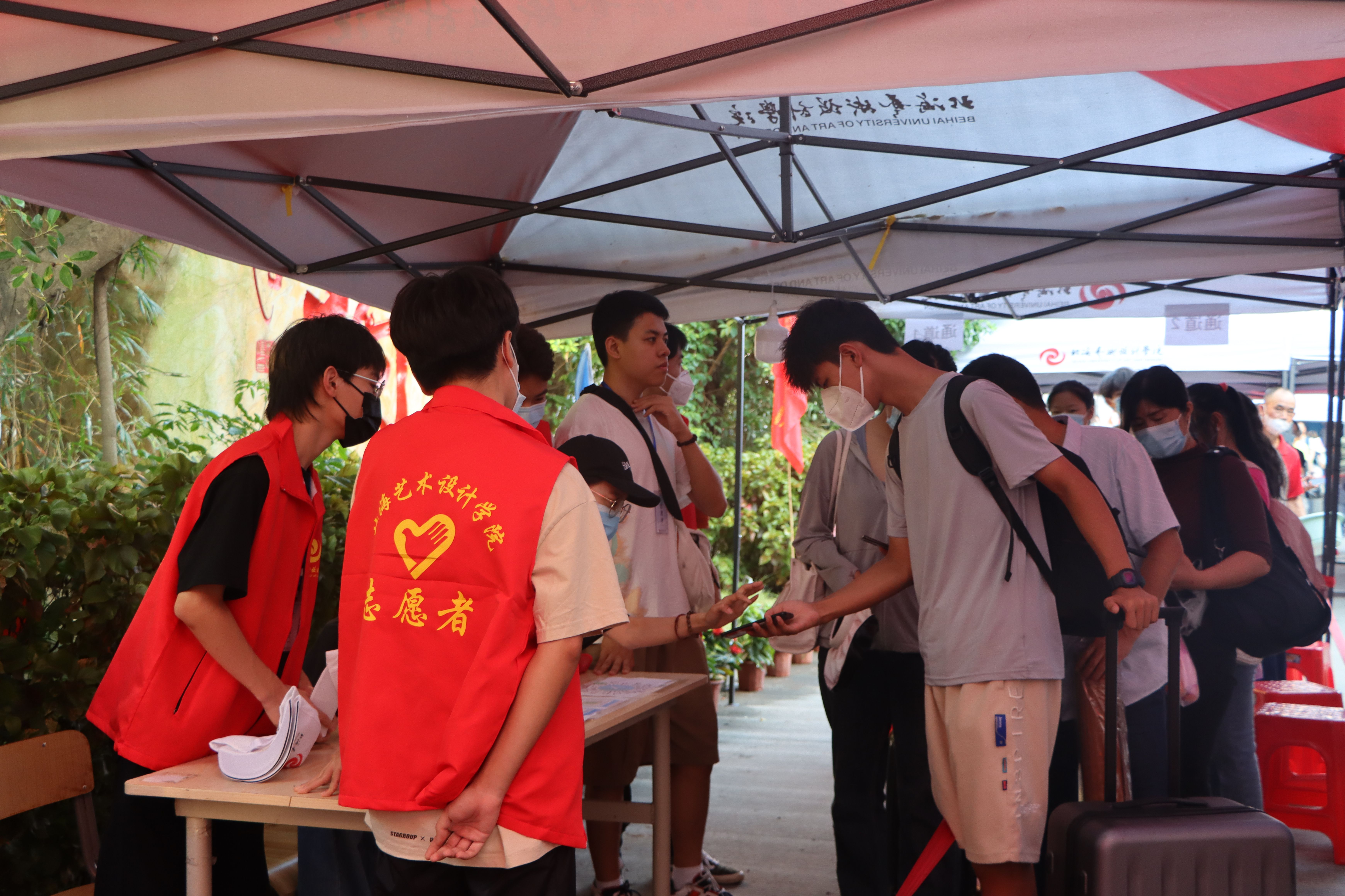 为确保新生入学工作的顺利开展,学校在北海火车站、北海福成机场均安排了迎新车辆。新生到达学校后,有序排队测量体温、查验录取通知书、广西健康码、通信大数据行程卡,以及对其行李进行消杀,方可入校。