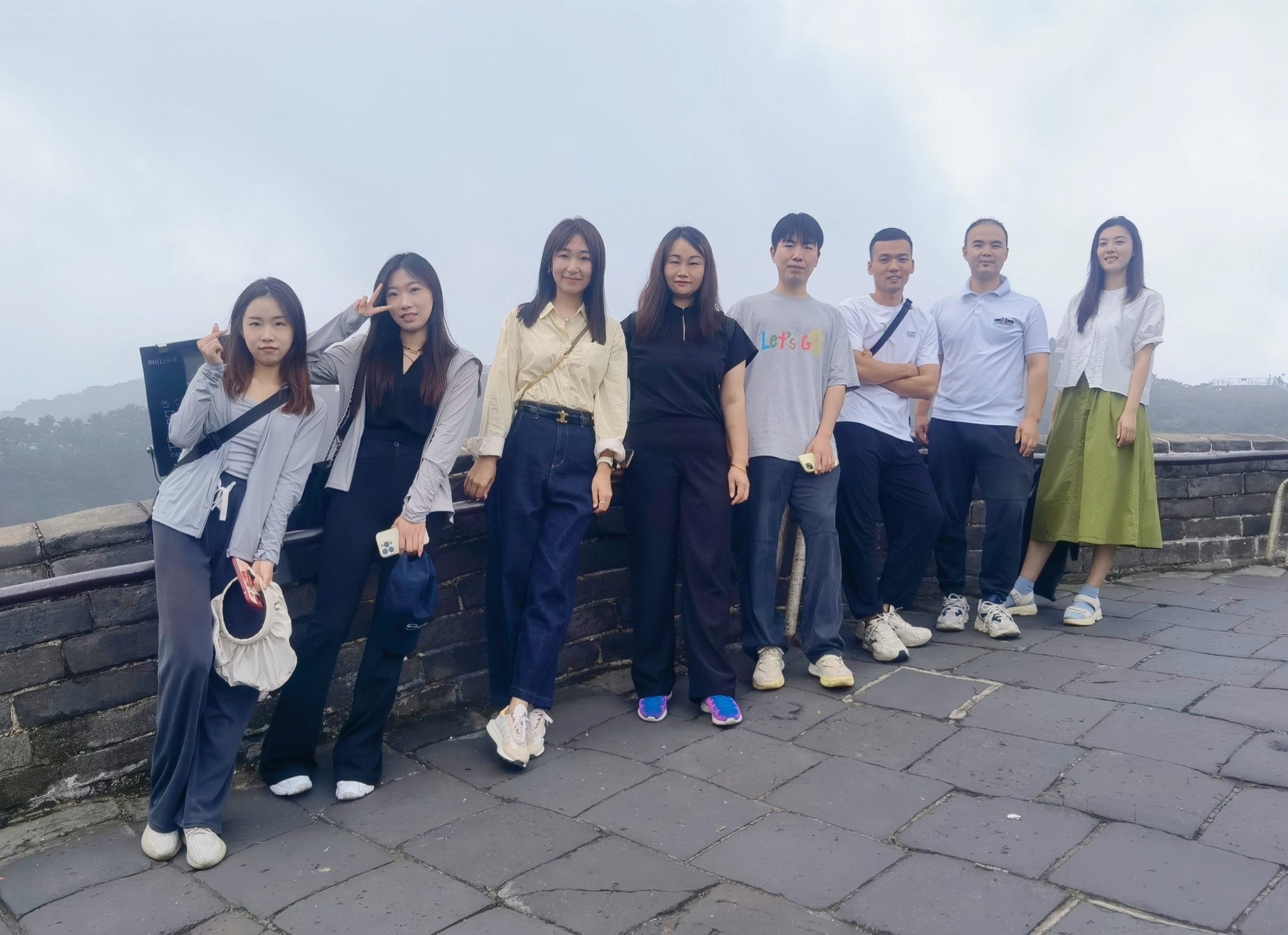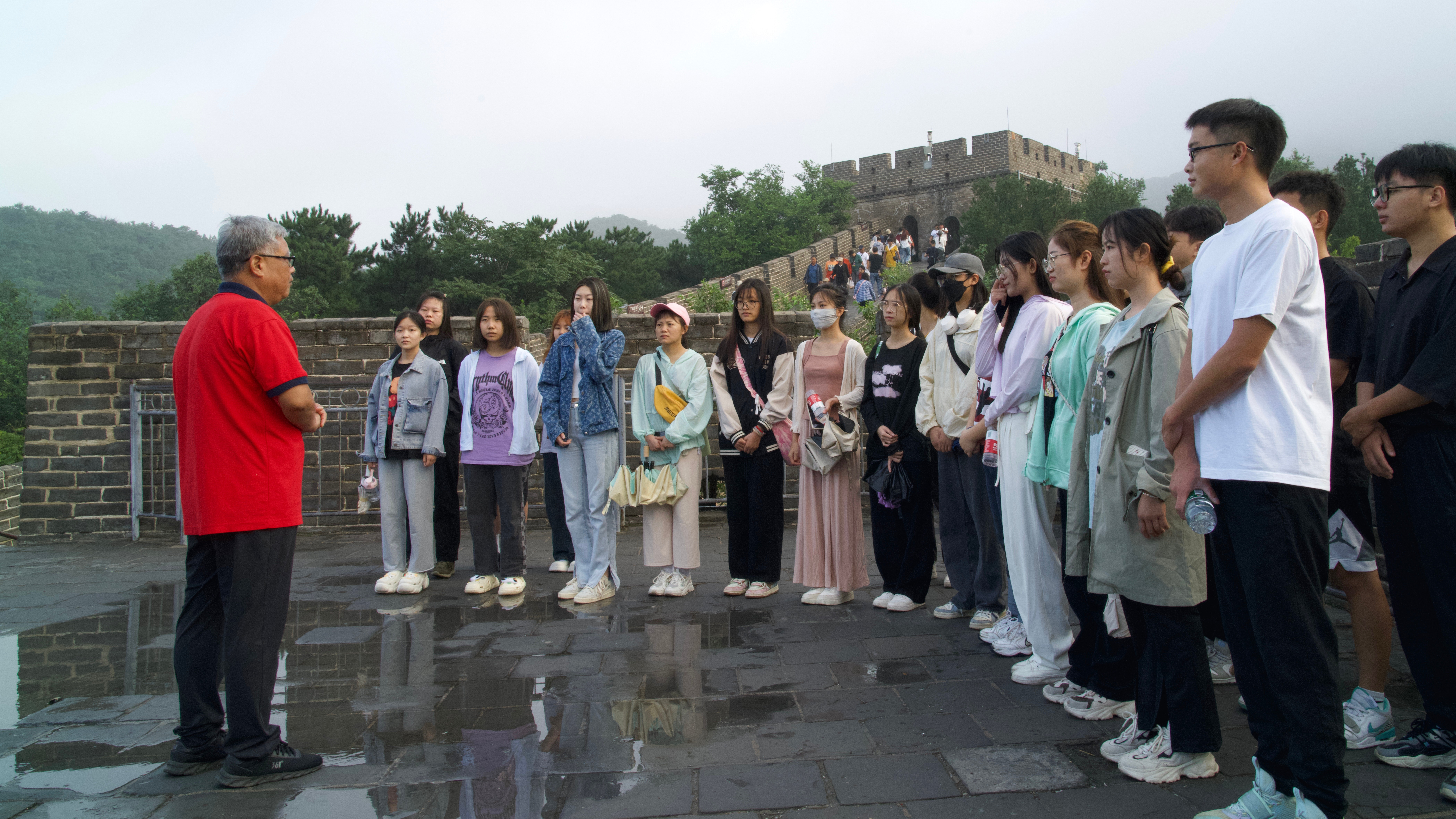 马克思主义学院院长姜献生教授及韦邕青老师在长城上进行思政教育。