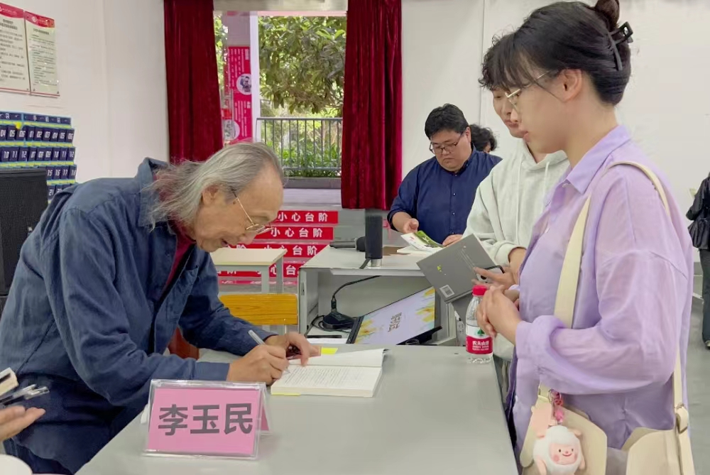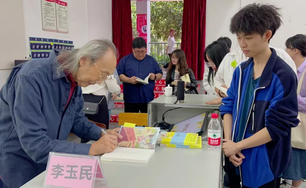 最后,讲座在现场热烈的掌声中落下帷幕。这场讲座不仅让学生们感受到李教授对法国文学的热爱和执着,更让他们对文学翻译有了更深入的认识和理解。讲座结束后,李教授将自己的著作赠送给讲座现场参与互动的学生,并与听讲座的师生合影留念。(陈贞考/摄)
