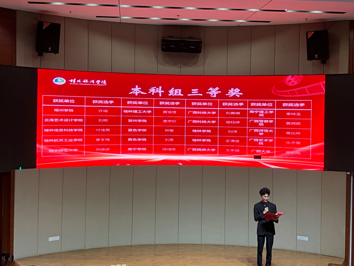 61日,本次影评大赛决赛在桂林旅游学院图书馆银桂厅成功举行。决赛采用现场随机抽取影片、现场观影、现场即时写作的比赛形式,共提交119篇有效参赛作品。经过专家委员会的严格审阅,评选出本科组、高职高专组特等奖各1名,一等奖各3名、二等奖各10名、三等奖各20名,本科组优秀奖29名,高职高专组优秀奖22名。我院刘明同学获得本科组三等奖。
