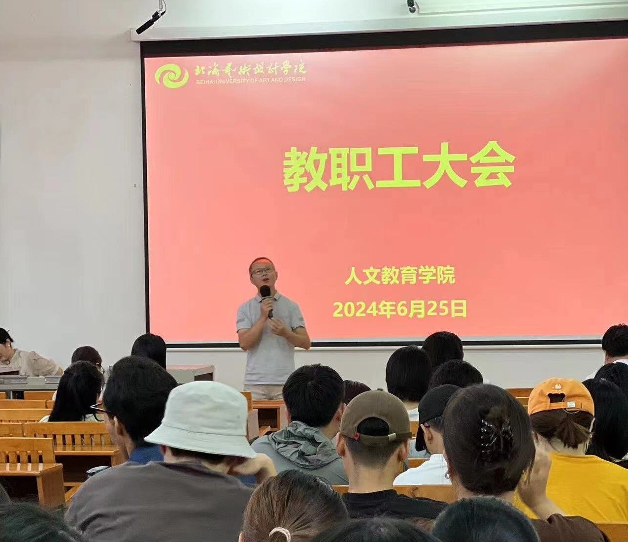 最后,分管校领导王斌总督学对我院各位教师寄予希望,王总督学指出,教育事业关乎人才培养、科学发展和文化传承各项工作,希望每位教师都能够认清形势,准确定位,扎根北艺,建设北艺,共同展望学校未来愿景,成为高水平的高校教师。