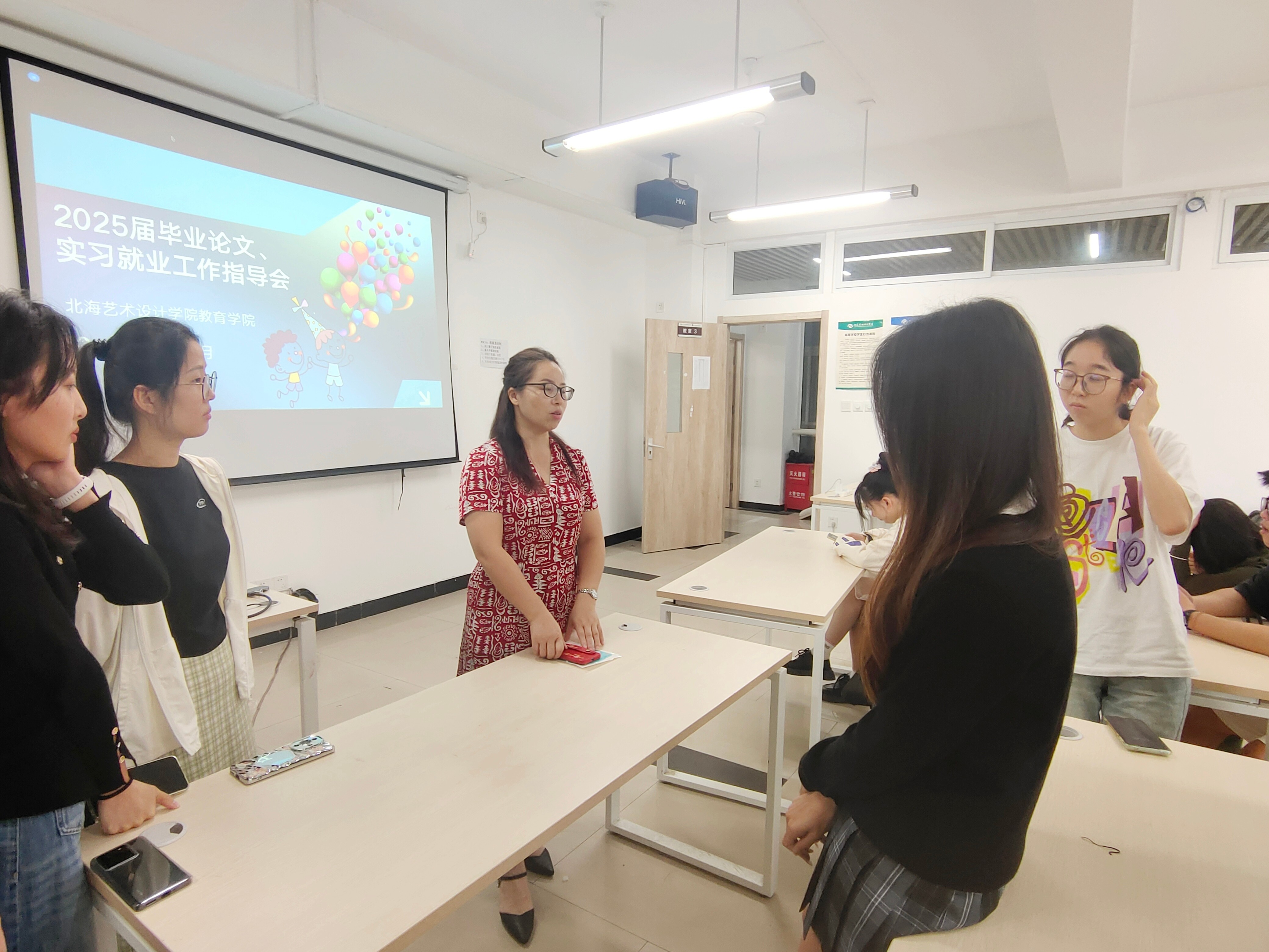 为加强教育学院学前教育、艺术教育人才培养质量,强化和落实学生大四学习工作。教育学院于20249月4日,在北海艺术学院北京实践基地励行楼3教室召开毕业论文与实习就业指导工作。教育学院院长熊秀峰主讲本次的指导会议,学校总督学王斌参加出席本次会议。此外参与本次会议的还有北京实践基地副主任严腾以及北京辅导员教师共同参与,旨在为即将毕业的同学们提供更具体、更全面的指导,以帮助他们顺利完成学业并成功就业。