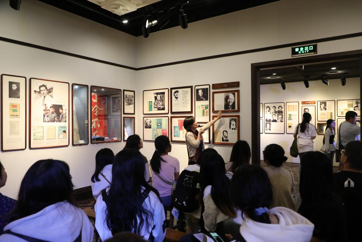 (讲解员为师生讲解丁玲的文学事迹)