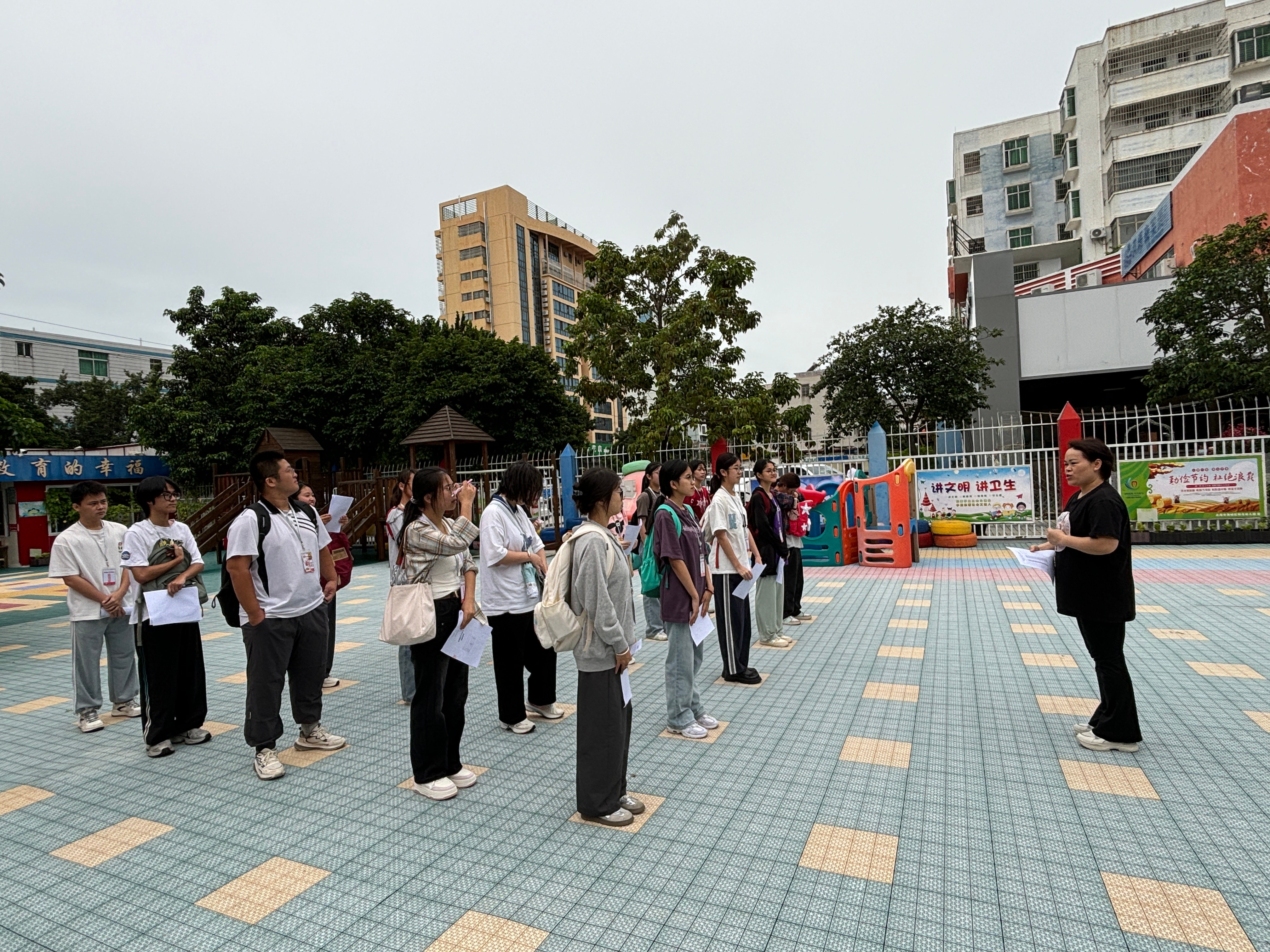 北海市阳光幼儿园林副园长给见习生进行入园培训