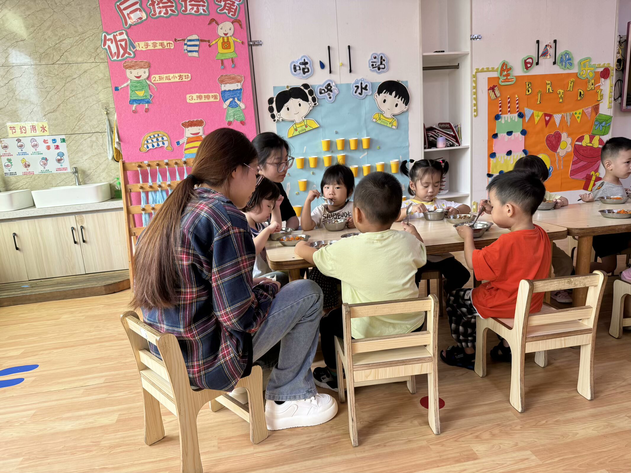 学前2402黄宝仪、高依慧组织幼儿进餐