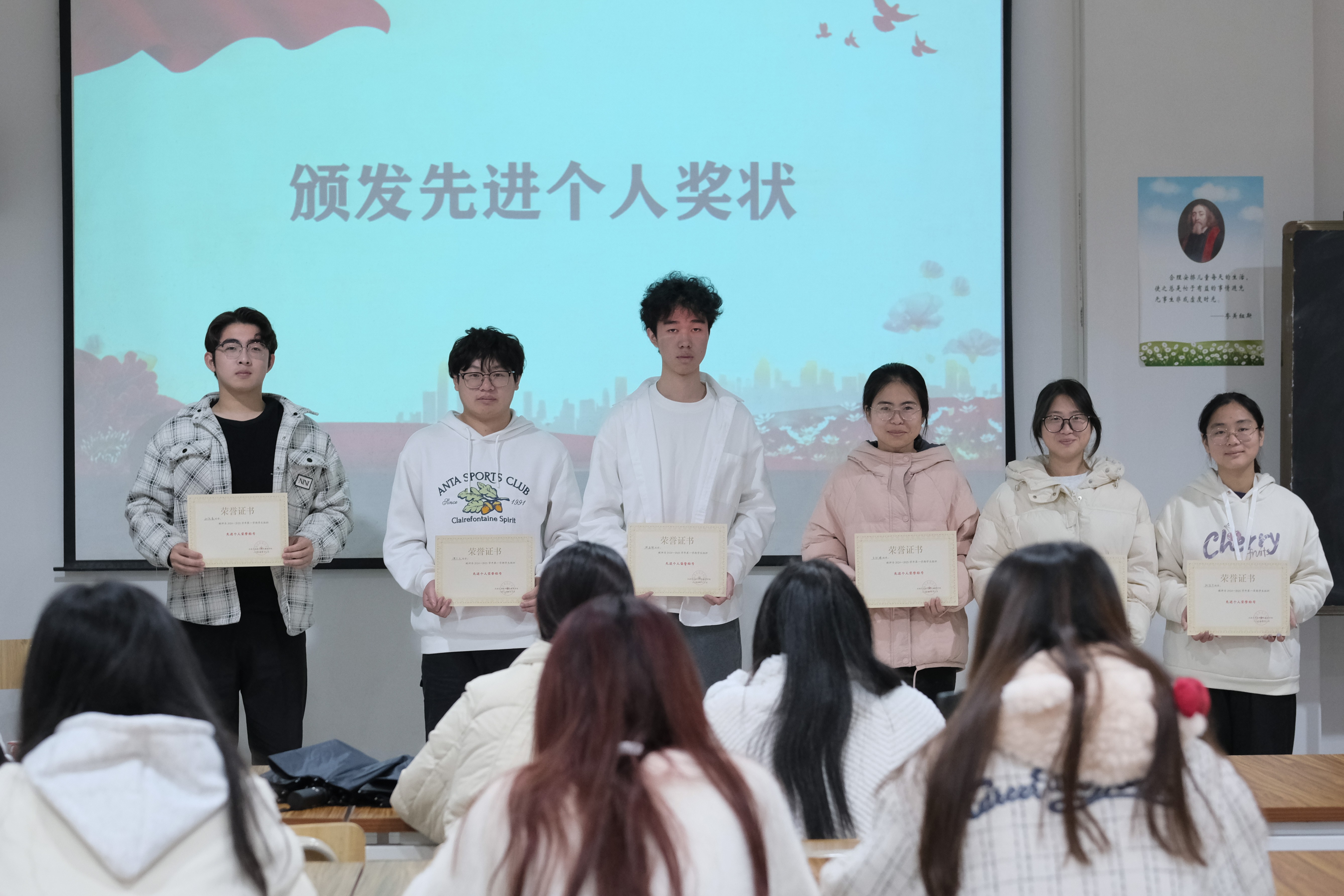 活动最后,对本学期团总支工作中表现优异的“先进个人”进行表彰。这些同学在工作中表现突出,为团总支的发展做出了重要贡献,希望团总支的成员能以他们为榜样,保持初心,砥砺前行,为建设更好的学院团总支不懈努力,继续以奋斗的姿态迎接挑战。