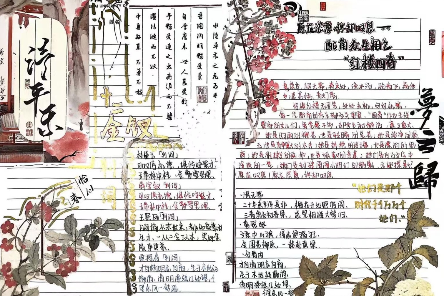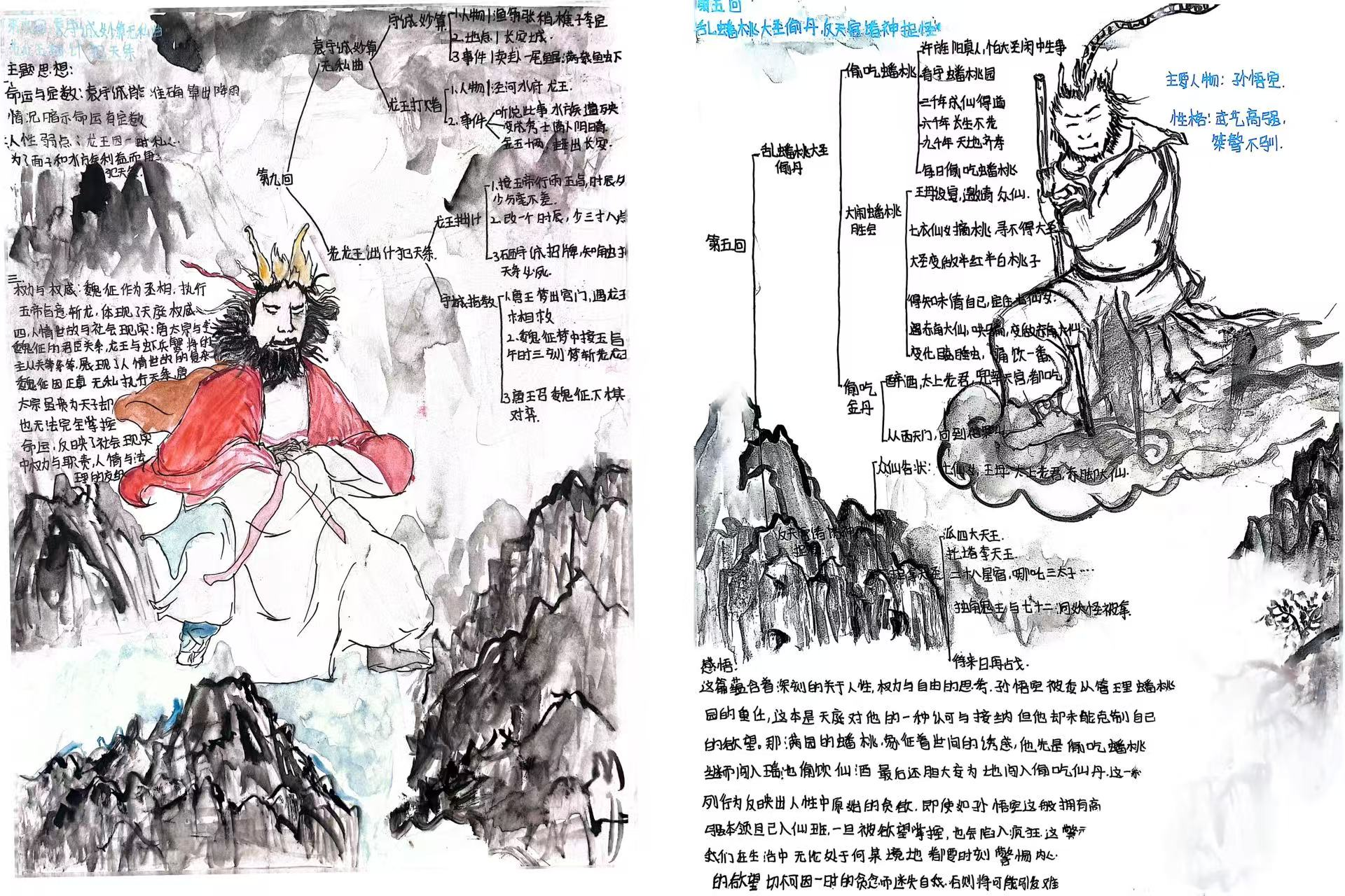 本次大赛已构建起“全员参与、全程用心、全面展示”的特色育人模式,不仅融入文学院课程体系之中,更是传承中华优秀传统文化的重要载体。大赛将艺术思维与创新意识融入经典解读,实现跨学科融合创新。文学院以四大名著读书笔记大赛为抓手,引导学生深入研读经典,传承中华优秀传统文化,形成独立思考的学术品格,培养具有深厚人文底蕴的人才。以下是部分优秀作品展示:
