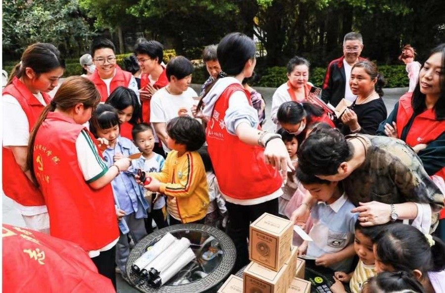 围绕雷锋精神,在文化宣传方面,本次活动设计了老少协作环节,通过雷锋相关知识的抢答,居民参与答题赢得折扇、明信片贺卡等礼品。同时让小朋友通过学习,在贺卡上写下向雷锋学习的寄语。活动以寓教于乐的形式极大增强了社区的凝聚力,实现了红色基因在文化中的代际相传。