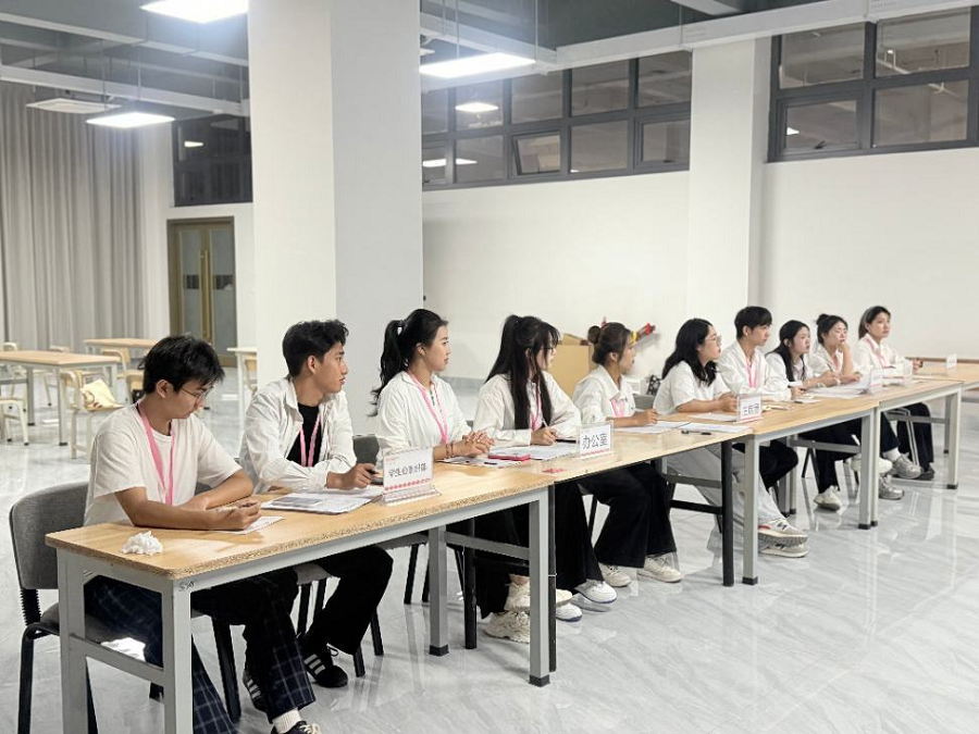 第三轮面试以“综合素养考察”为重点,全面评估考生的社交能力与适配潜力。史晓菲老师及主要学生干部共同担任评委,以结构化面试的形式进行,围绕沟通协调、应急应变、责任意识等维度提问,通过互动交流考察干事的逻辑思维与团队协作意识,判断其是否具备长期参与分团委工作的潜力。