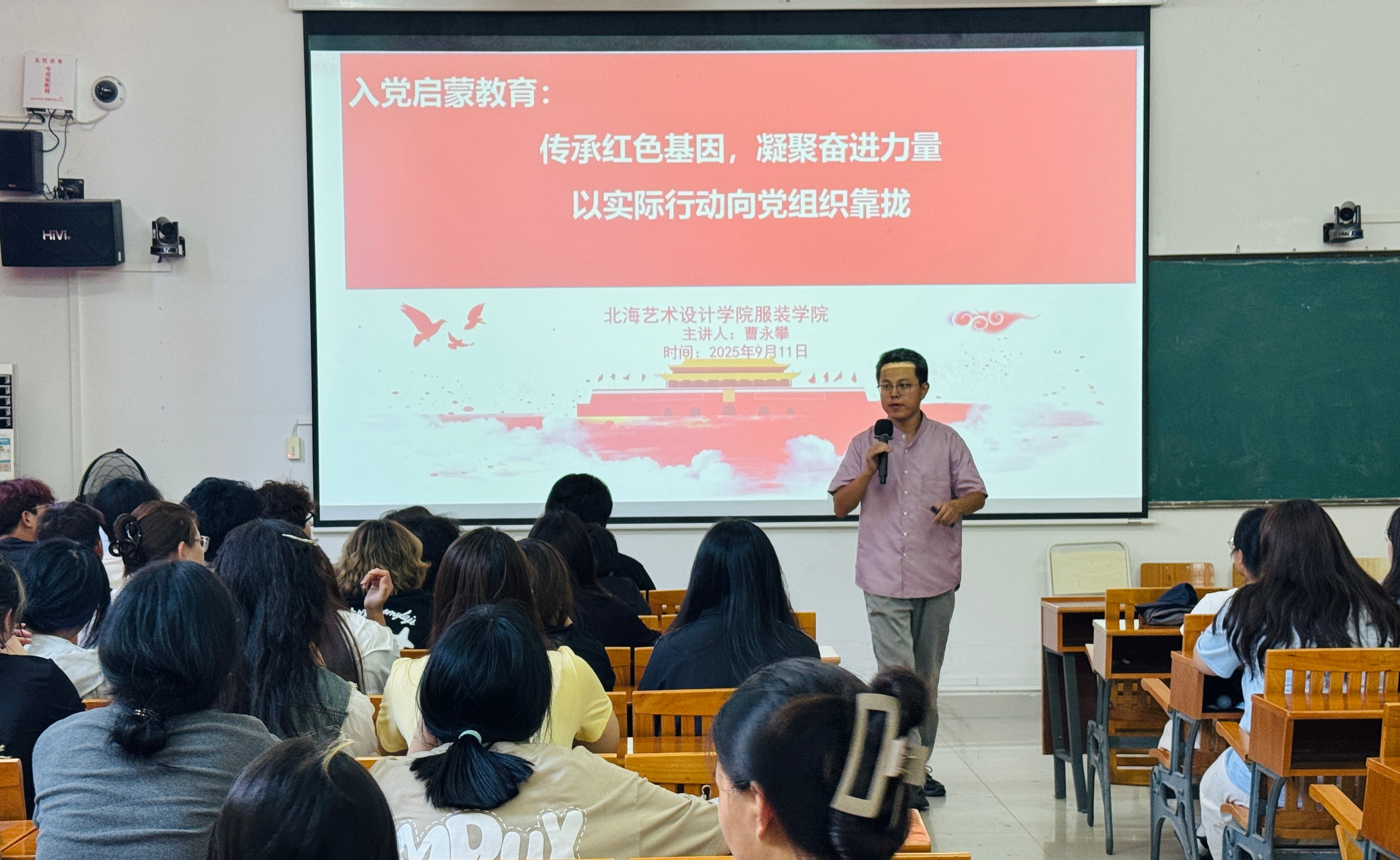 9月11日,服装学院党支部书记曹永攀结合党的发展历程与时代使命,用通俗易懂的语言讲解了党的性质、宗旨及入党流程向同学们上了一堂生动的入党启蒙教育课。曹书记重点分享了身边优秀学生党员在学业发展、志愿服务中的先进事迹。同时,鼓励新生树立远大理想,以党员标准严格要求自己,主动学习党的理论知识,积极向党组织靠拢,在青春赛道上践行责任与担当。