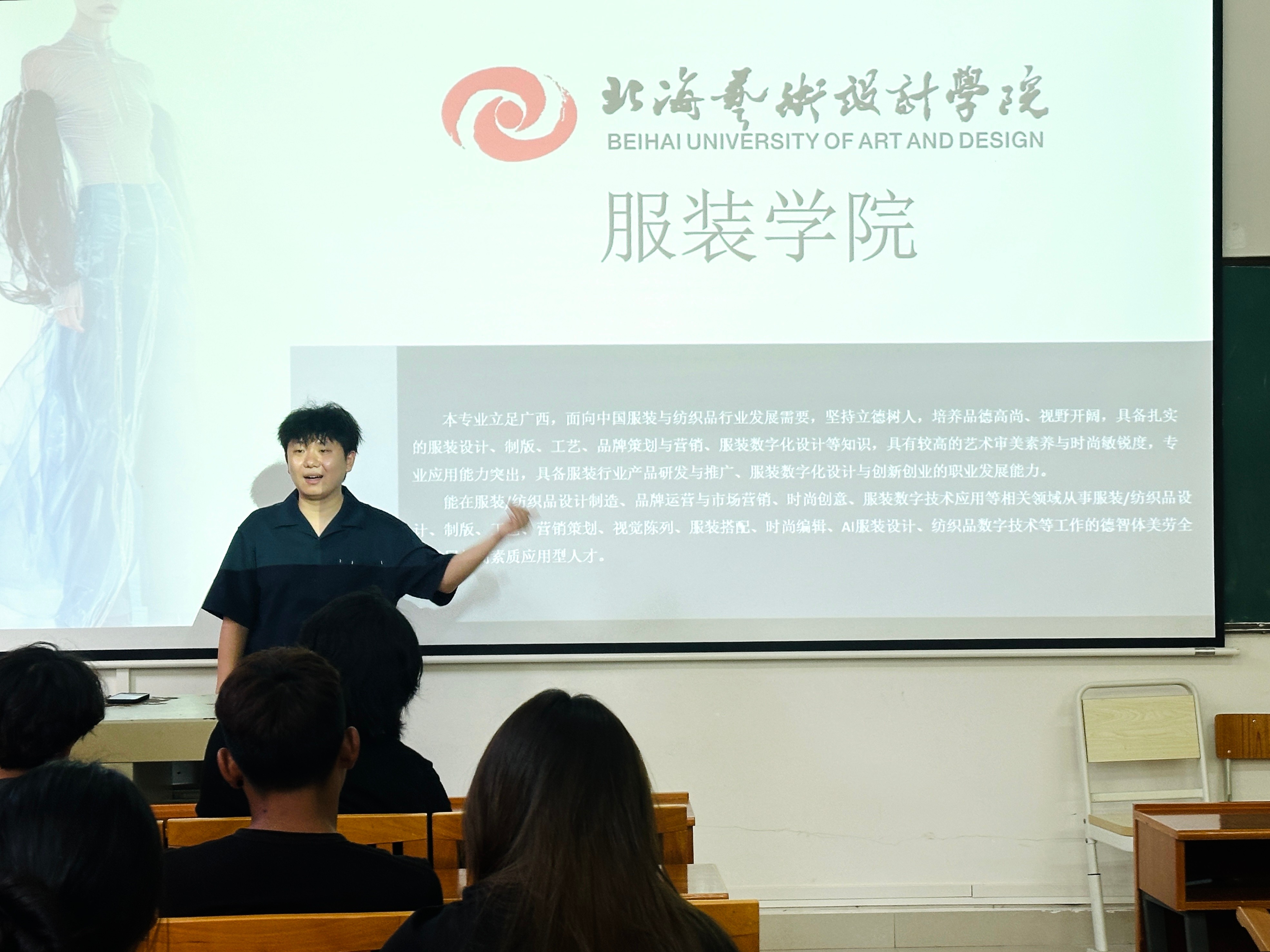 9月12日,服装学院副院长郝士杰聚焦“服装+”的多元发展方向进行专业介绍。围绕服装与服饰设计专业课程体系、培养目标、就业前景展开讲解,通过展示往届学生的优秀设计作品、校企合作项目成果,毕业生学习经验分享VLOG让新生直观了解专业特色与发展潜力。此外,郝院长结合行业趋势,建议新生提前规划学习路径,积极参与学科竞赛与实践活动,提升专业竞争力。