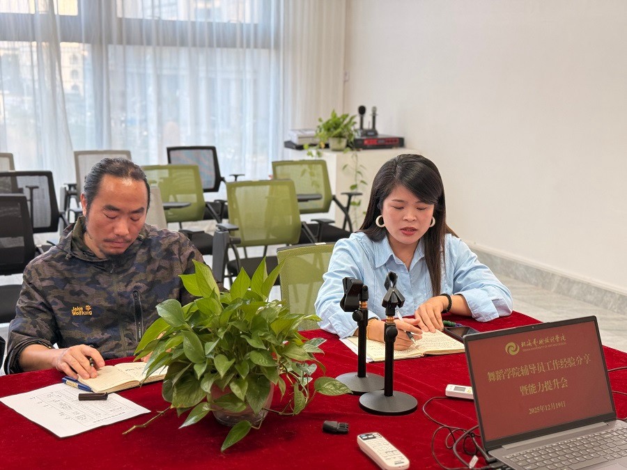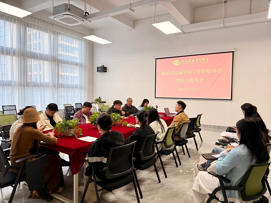 2025年12月19日下午,舞蹈学院在艺德楼215举办辅导员工作经验分享暨能力提升会。会上围绕舞蹈专业学生管理的工作经验交流,现场展示的工作笔记内容详实,体现了辅导员用心育人的责任担当。舞蹈学院党支部书记宋慧敏、学工办全体教师及全体辅导员出席会议,会议由学工办主任谢鹏主持。