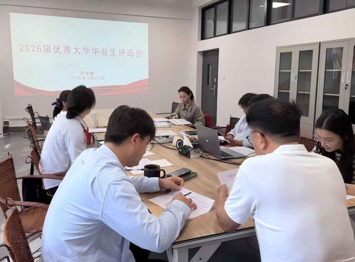 此次评选会作为文学院2026届优秀大学毕业生评选工作的重要环节,充分彰显了学院对人才培养质量的高度重视。评选工作旨在选树先进典型、发挥榜样引领作用,激励广大学子见贤思齐、奋发进取。学院号召全体学子以优秀毕业生为标杆,珍惜韶华、勤学笃行、砥砺品格,不断提升综合素养,努力成长为德智体美劳全面发展的新时代青年。吴小钰/摄)