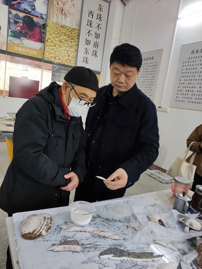 王教授对近年来,北海贝雕通过校企合作,让学生更好地了解北海贝雕,培养传承人,自觉参与技艺培训,积极推动北海贝雕国家级非物质文化遗产的传承与发展表示肯定。他指出,校企合作是解决北海贝雕人才培养的重要渠道,通过校企合作,从高校纯艺术专业人才,提升贝雕艺术的,结构,线条,空间,格调的美术,提升审美情趣,推出多元化产品,迎合新时代审美的变化,北海贝雕一定能走得更远,我坚信,中华民族艺术是不可磨灭的。他表示本次调研回去后,他也将继续作深入研究,共同为保护,传承和发展国之瑰宝——北海贝雕献出自己的智慧和力量。