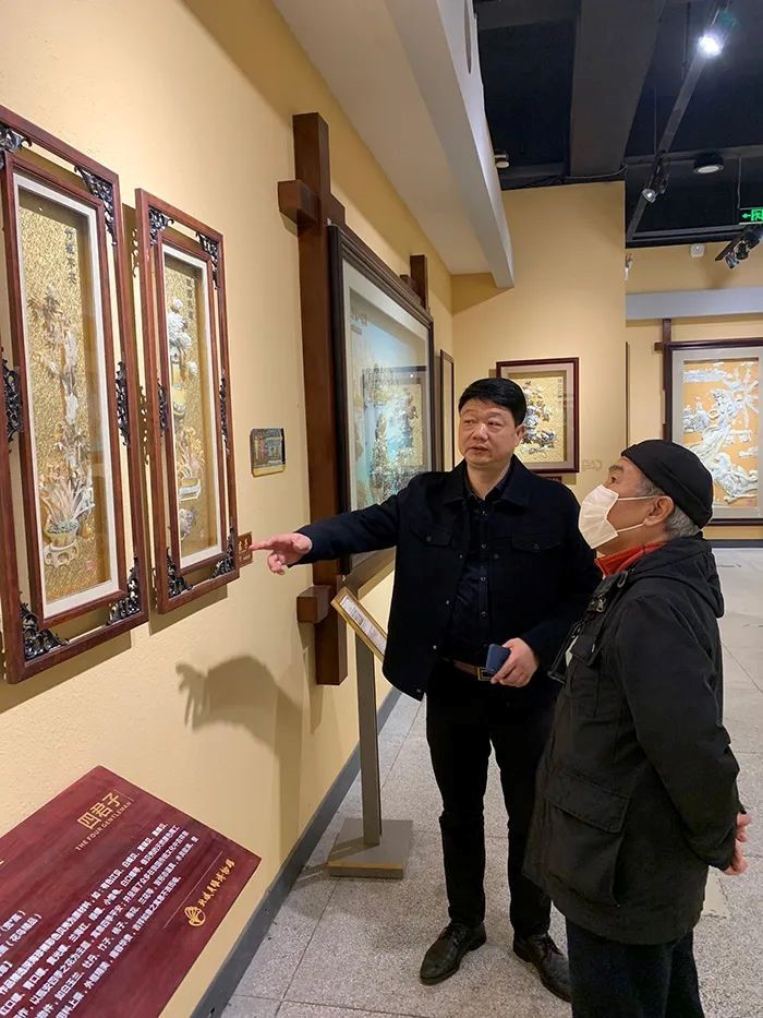 在参观过程中,当王教授得知,北海贝雕经过数年精雕细琢,已经成为代表广西的国礼和区礼,并成为北京人民大会堂、首都国际机场、商务部等重大场馆的重点装饰后非常高兴。王教授对当前在疫情冲击下,经济环境恶劣,恒兴珠宝公司仍然能坚守贝雕产业,并坚持不懈地传承和发展贝雕技艺表示肯定和赞赏。