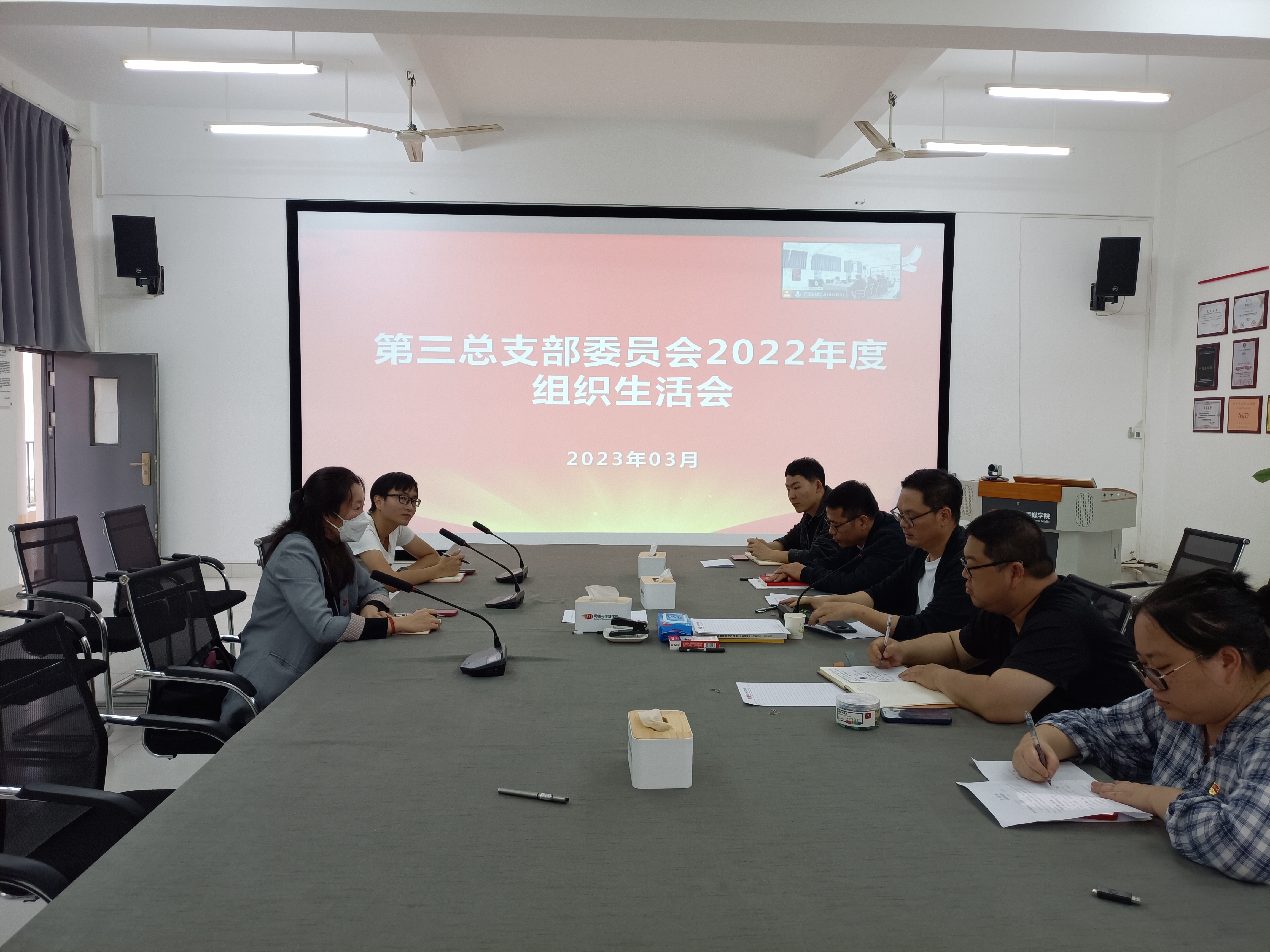 3月15日下午,2022年度第三党总支委员会班子民主生活会召开。会议以全面学习贯彻习近平新时代中国特色社会主义思想,深刻领悟“两个确立”的决定性意义,增强“四个意识”、坚定“四个自信”、做到“两个维护”,团结带领党员干部群众以担当作为、奋发有为的精神状态贯彻落实党的二十大作出的重大决策部署为主题,紧密联系党总支工作实际,查摆突出问题,开展党性分析,进行批评和自我批评,明确改进措施和努力方向。