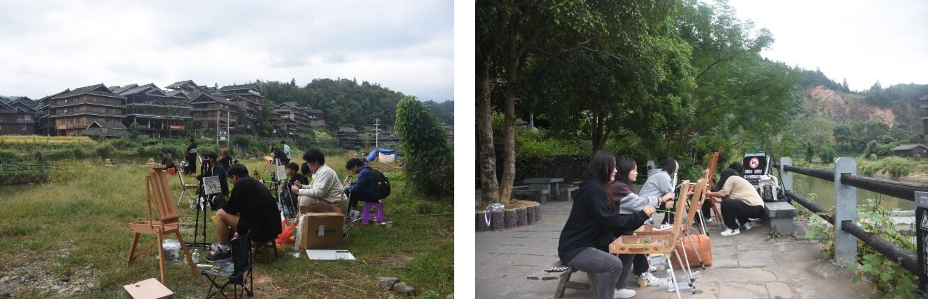 2023年109日,美术学院绘画专业2022级学生前往独具民族特色的柳州三江开展采风写生实践活动。本次写生目的在于通过近距离感受三江侗族自治县程阳八寨的自然风光和风土人情,深入了解艺术源于生活而又高于生活的含义,转变学生绘画思维,从而创造出更具生命力的作品。