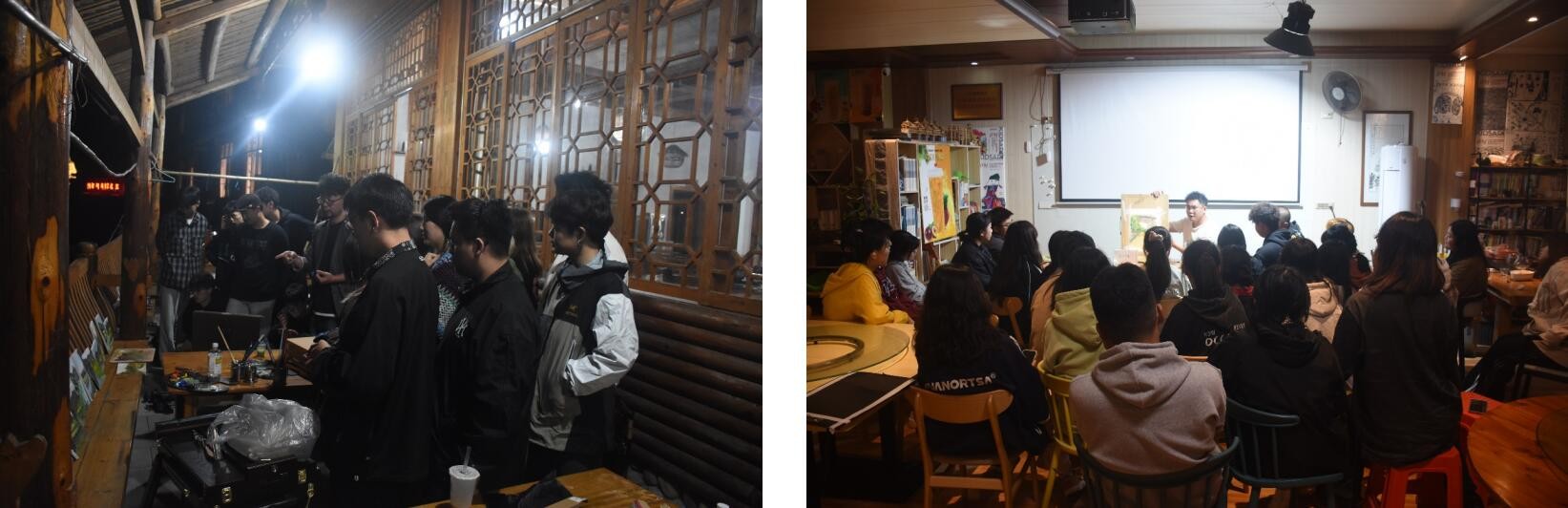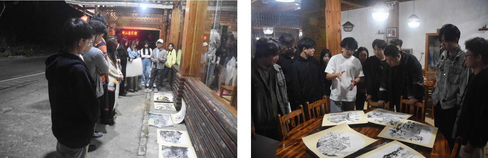 写生是一个循序渐进的过程,学生白天在老师的带领下尽情地开展户外写生活动学习,感受当地自然风光和风土人情并付诸于创作中。晚上则是检验和反哺教学不可或缺的必要环节,为此教师们认真负责地对每一位同学的画作进行了详细讲评。