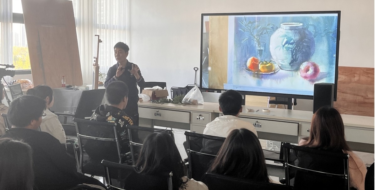 20231117日,廖开教授来我院开展水彩画写生技法与表现的教学示范课。