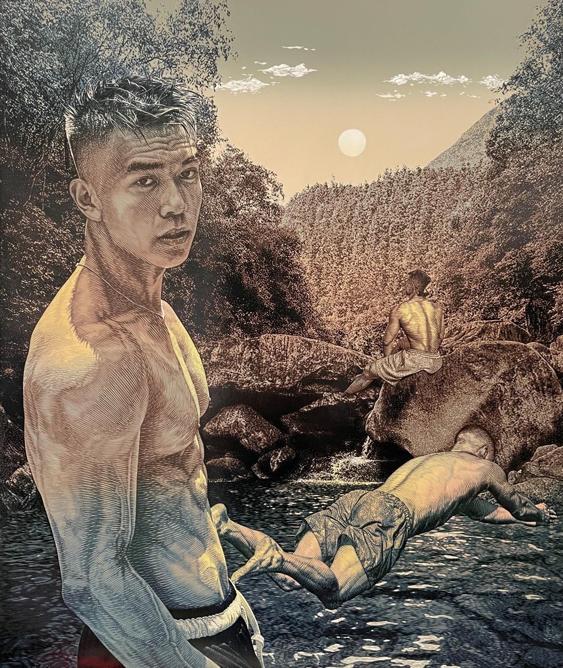 《江风飘然起》套色木刻版画 89×64cm