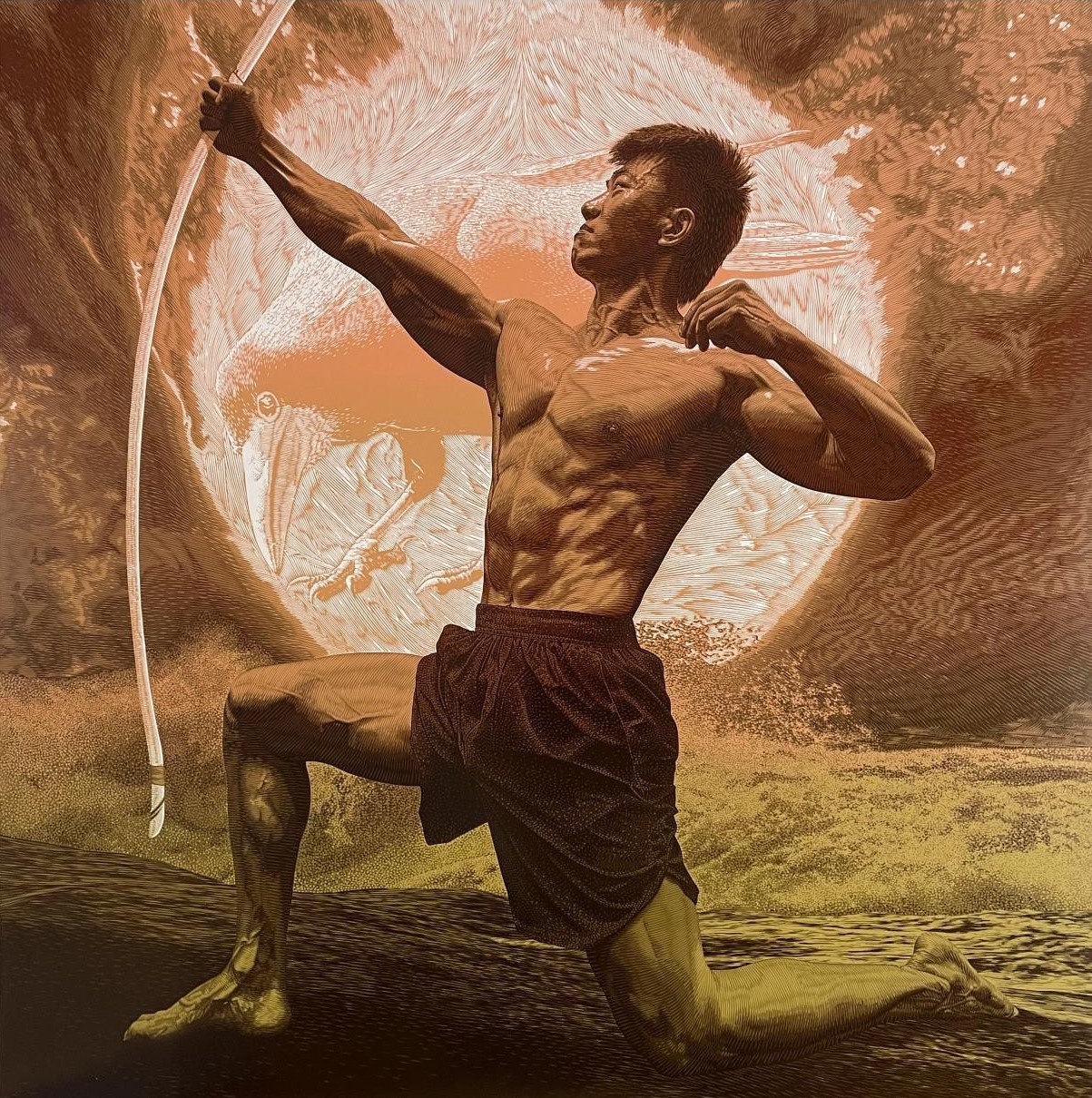 《引弓射日之志》 套色木刻版画 100×100cm