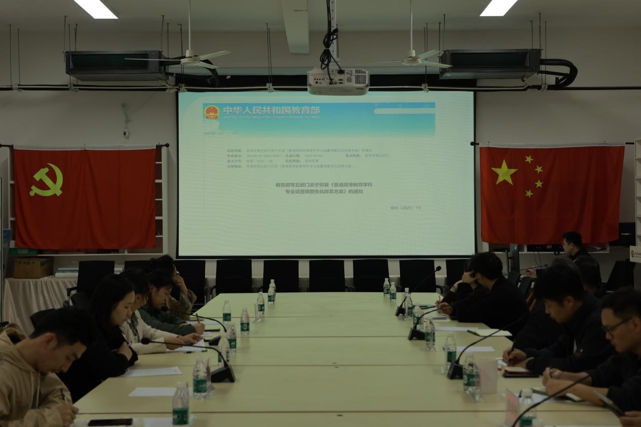 在会上,吕雅婷副处长就“新专业申报”展开了培训交流。她分享了有关“政策解读”“前期调研”和“材料准备”三大模块的专业申报工作事宜及经验。吕雅婷副处长详细解读了国家教育部、自治区教育厅有关高校专业设置的文件,强调了新专业申报的趋势和需求。她对文件要求进行了逐一分析,同时讨论了教师队伍、教学条件、实践基地等申报条件要素。另外,还分享了我校以及广西其他高校最近的新专业申报情况。听取了吕处长相关经验,建环学院参与人员与吕雅婷副处长就“专业带头人”“预备专业”等问题展开了交流讨论,其中也涉及教师队伍建设、前期调研、用人单位等方面的相关问题。
