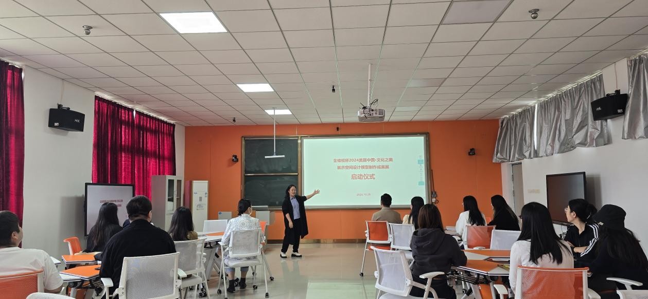 20241028日,课程组举行了“金橄榄杯2024美丽中国·文化之美展示空间设计模型制作成果展”的启动仪式。展览将全面展示学生的学习成果和创意,汇聚了他们在学习过程中的心血与智慧。依托《展示空间设计模型制作》课程,展览旨在推动学术、艺术和科技等多个领域的创新,届时将展出众多学生的创新作品。每一件展品不仅体现了他们对理论知识的深刻理解,也展示了他们在实践中的探索与创新精神。我们期待通过这次展览,让观众感受到学生们在设计理念、展示技艺和文化表达等方面的独特创意与热情,共同领略中华文化之美与当代设计的魅力。