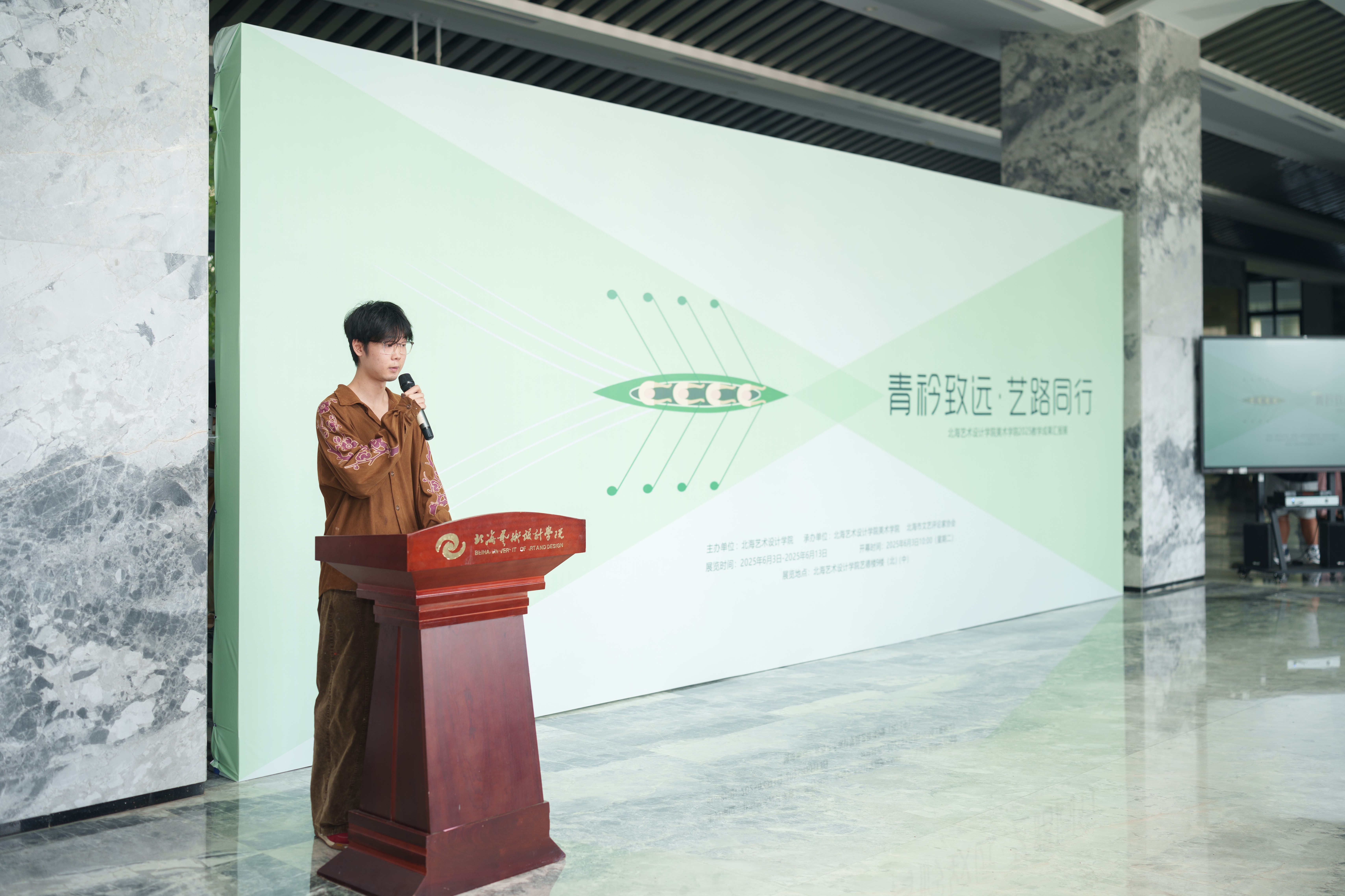 随后,美术学院执行院长龚为致辞,美术学院以“发现美—表达美—传递美”为育人脉络,融入地域文化教学。“青衿致远艺路同行”2025教学成果汇报展,荟萃学生佳作,是对人才培养成效的检阅。学院始终以北海独特的海洋文化与西部风情为创作源泉,引导学生扎根本土、深植生活。展览见证学院教育理念,也是学子深造启程号角,诚邀各界观展,共话美育未来,培育更多应用型美术学类人才。