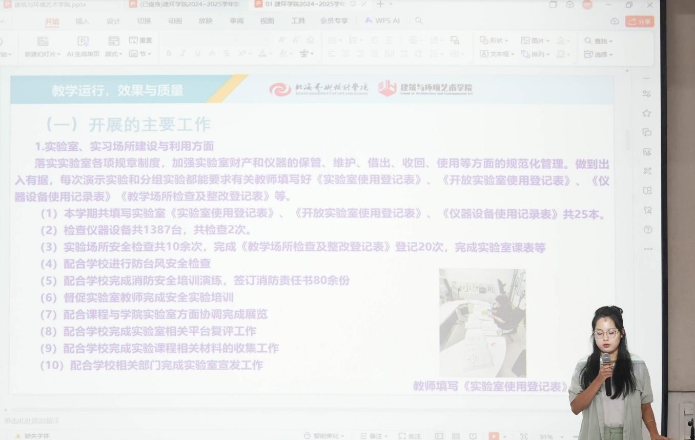 紧接着,建筑与土木工程教研室着重总结专业教学成果,强调建筑学与土木工程专业在学生培养方面成效显著,毕业论文答辩通过率高,专业整体考研与就业成绩优异。