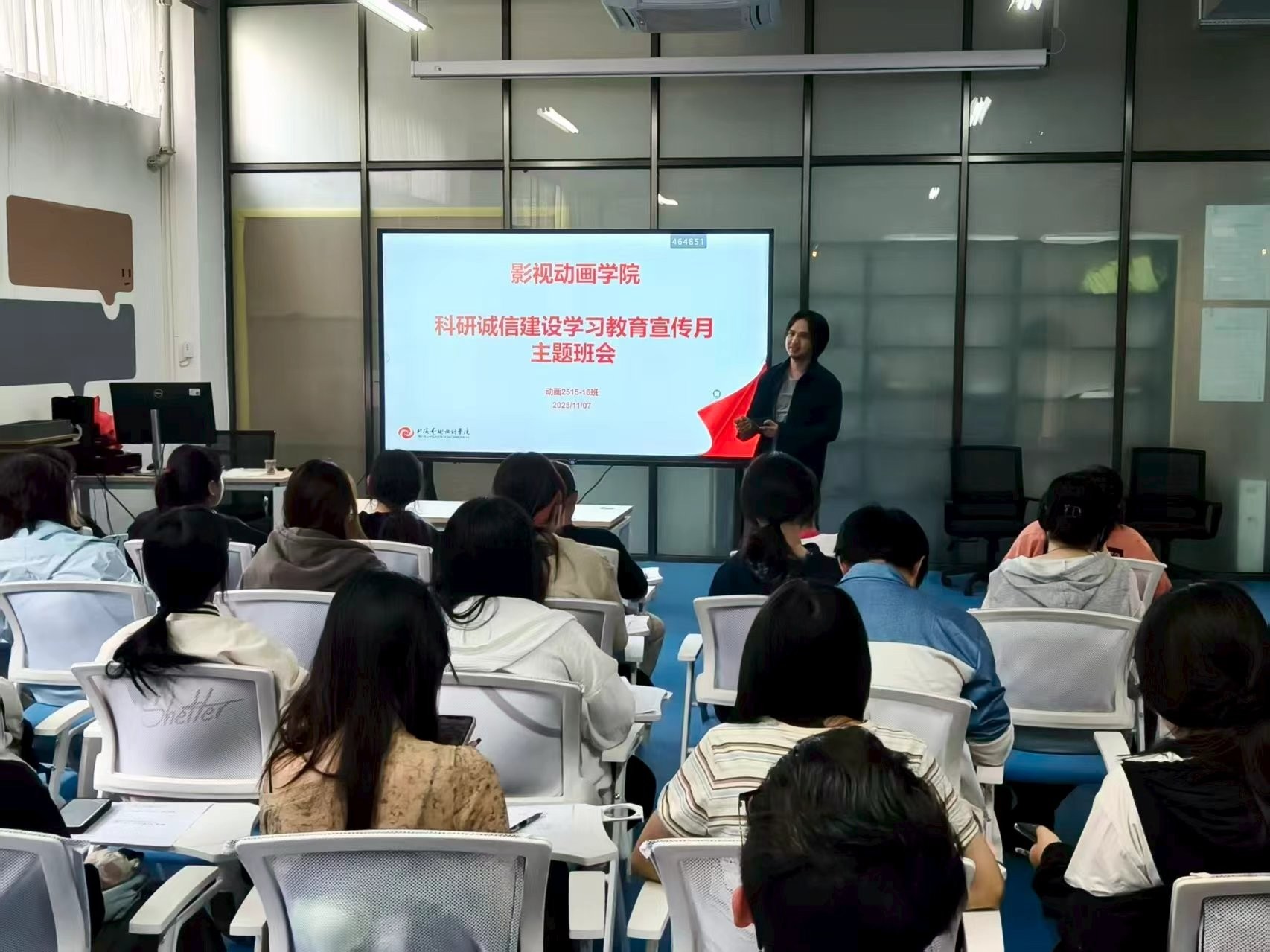 分管科研副院长刘涛在会上强调,科研诚信是学术研究的生命线,更是影视动画学科科研与创作并重的立身之本。他要求全院师生以文件精神为遵循,坚守学术底线,杜绝各类失信行为,共同营造风清气正的科研生态。