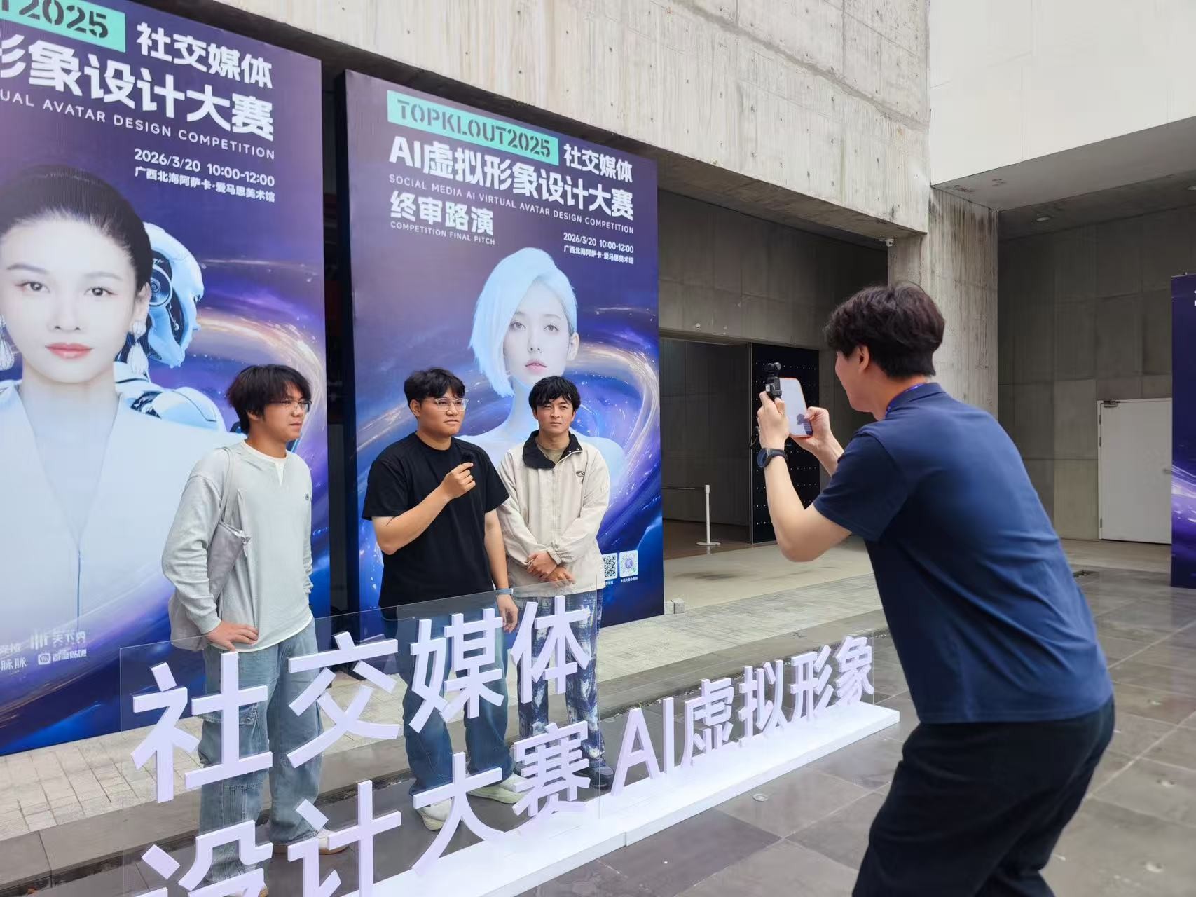 2026年3月20日,北海艺术设计学院副校长陶立阳、美术学院执行院长兼校长助理龚为、副院长殷声,以及摄影教研室部分教师、23/24/25级摄影专业学生代表一行人等受邀参加2026克劳锐第10届新媒体生态大会之社交媒体AI虚拟形象设计大赛终审路演活动。
