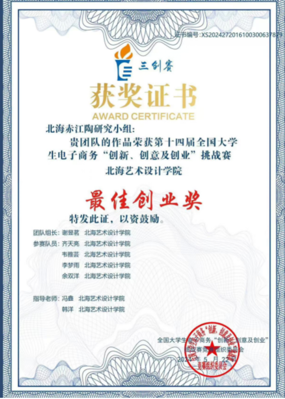 2024年5月 论文《北海赤江陶瓷工艺实践研究》被《学习周报》社评为优秀论文一等奖;