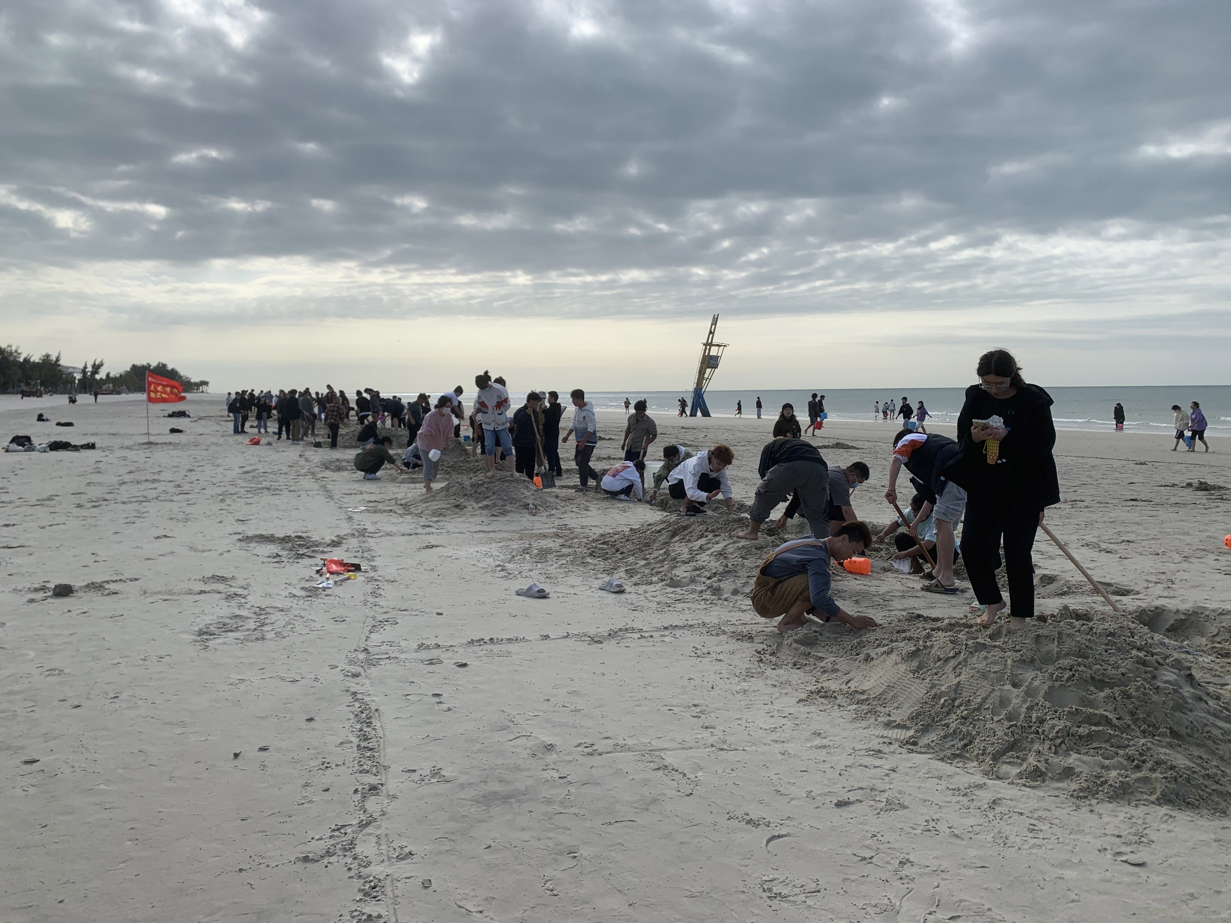 11月8日早8:30 北海银滩的海岸线上出现了一群可爱的人们,正在辛勤的做着大自然的搬运工,以白沙为工具,歌颂着祖国,庆祝着党的百年华诞,也诉说着他们对这片海的热爱。这群可爱的人是北海艺术设计学院美术学院雕塑专业的师生们,共计126人。