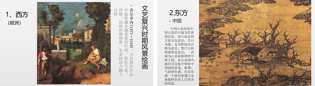 讲座伊始,雷克勤教授围绕“西方和东方风景画发展变化”这一主题,分别就欧洲、中国和日本大师们的风景画详备地展示了东、西方风景画的发展变化——从西方的文艺复兴时期到东方的山水画层层递进的过程,并将其从结构和画风两方面进行对比讲解,总结告诉学生们写生的特点和表现手法,让同学们不仅能够了解和掌握写生的方法,而且能够更好地体悟各类画种的精髓以及内在的人文精神。