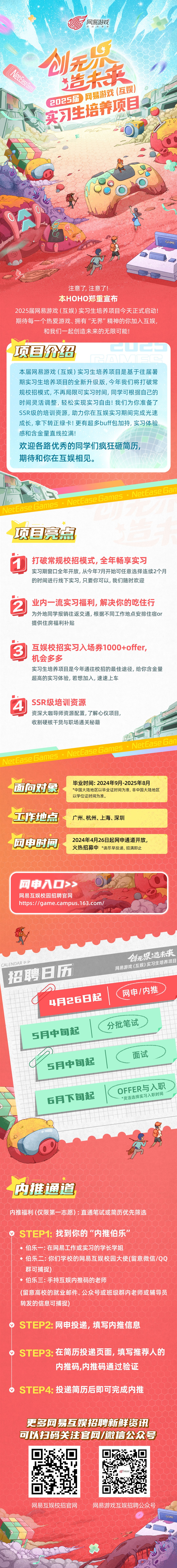 【2025实习】网易游戏(互娱)2025实习生培养项目正式启动!