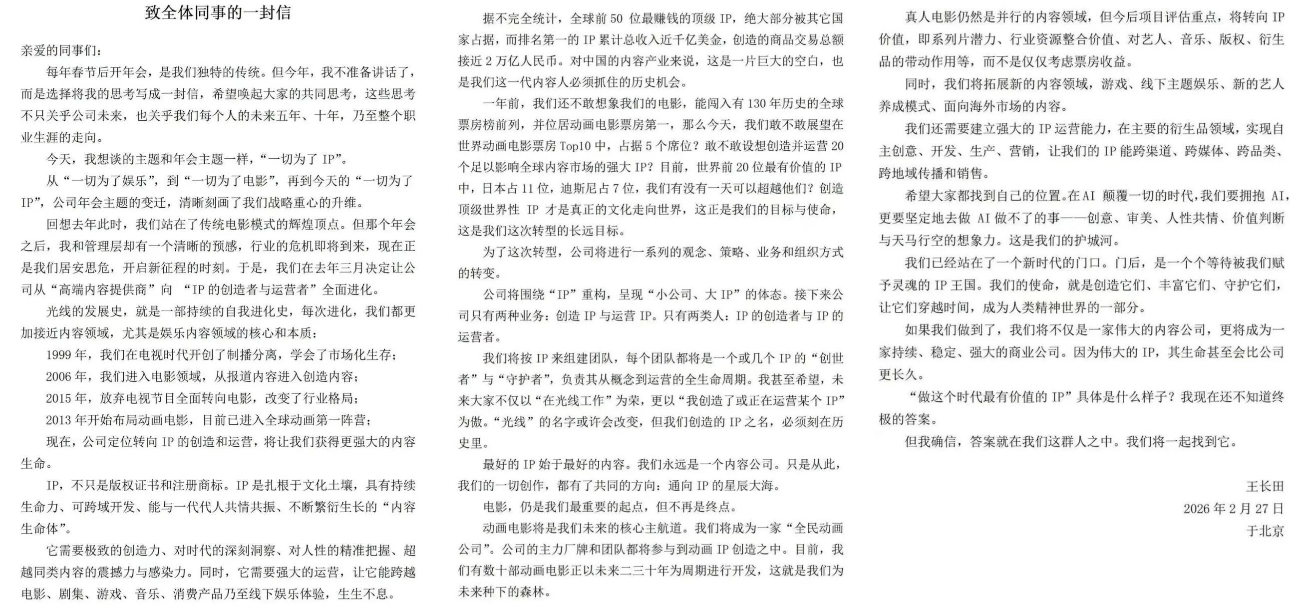 这并非一份普通的年度行政讲话,也不是那种充满陈词滥调的军令状。在这个 AI 技术已经从概念走向落地的关键节点,这封信更像是一份站在未来视角的生存复盘与指引书。