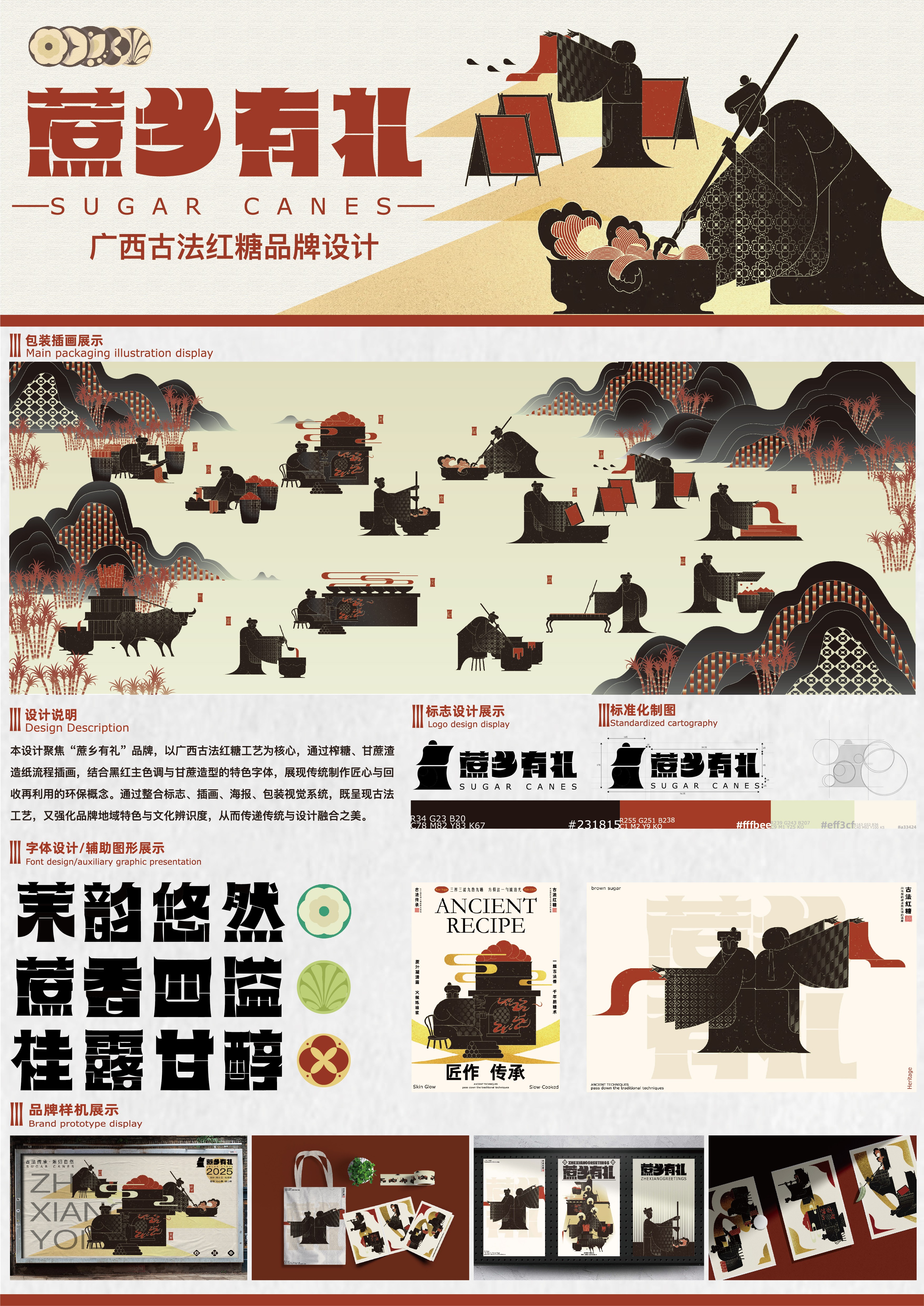 作品名:蔗乡有礼——广西古法红糖品牌设计 作者:黄圳烨、袁志祥、吴兴