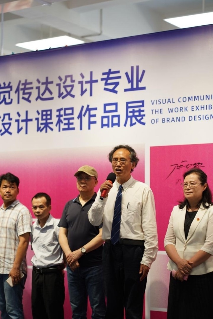 首先,由主课老师陈莎进行发言,陈莎老师介绍了本次展览的主题、教学设计和教学目的,肯定了同学们的设计作品。并表示本次汇报展的作品,是秉承设计艺术学院视觉传达设计教研室产教融合、校企合作、服务地方经济建设、服务社会发展需求的教学理念下,通过“视觉”语言把企业品牌具象化,把品牌价值传达给消费者,为企业塑造可持续性的、器宇非凡的品牌视觉形象。祝愿即将上京赶赴另一段学习的同学们在未来的道路上取得更大的成就和发展。